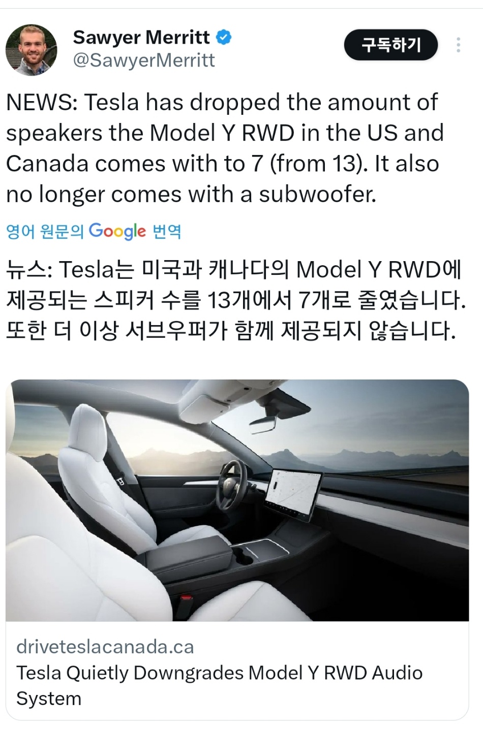 모델Y은 안그래도 모델3에 비해 오디오 퀄리티가 쪼금 떨어진다는 평가인데,