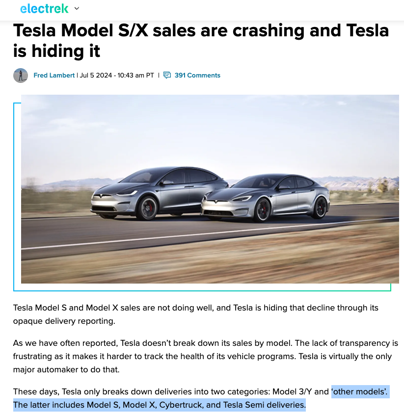 테슬라는 '모델S/X 판매량 폭망'을 숨기고 있다 본문
