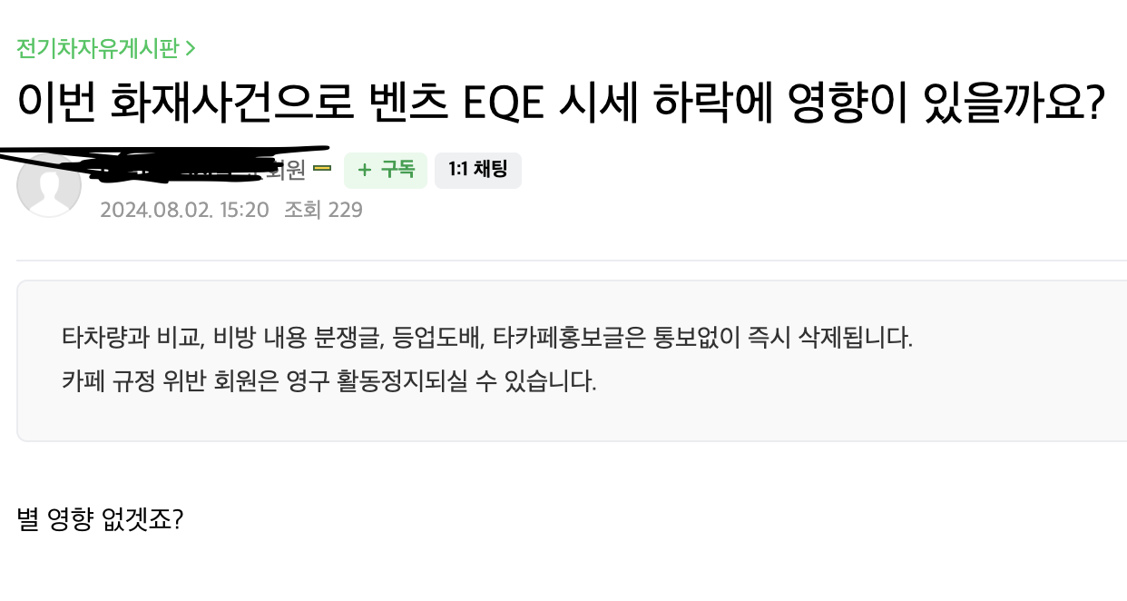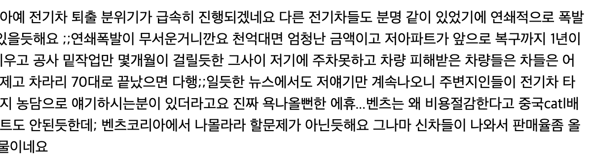 아무리 얘길 해도 못알아 먹으니내가 더 말할 필요도 없지. 심지어,EQE는 EQS 온갖 하자와 폭망 상황을 멀쩡히 보고도 산 사람들이 많으니,이 쯤 되면 산 사람도 문제. 이미 경고했던 참고 글 https