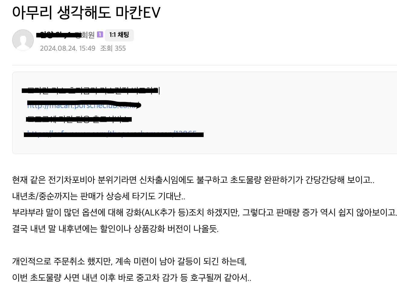 타이칸 페리와 마칸EV, 2024년 8월 말 현상황? 본문