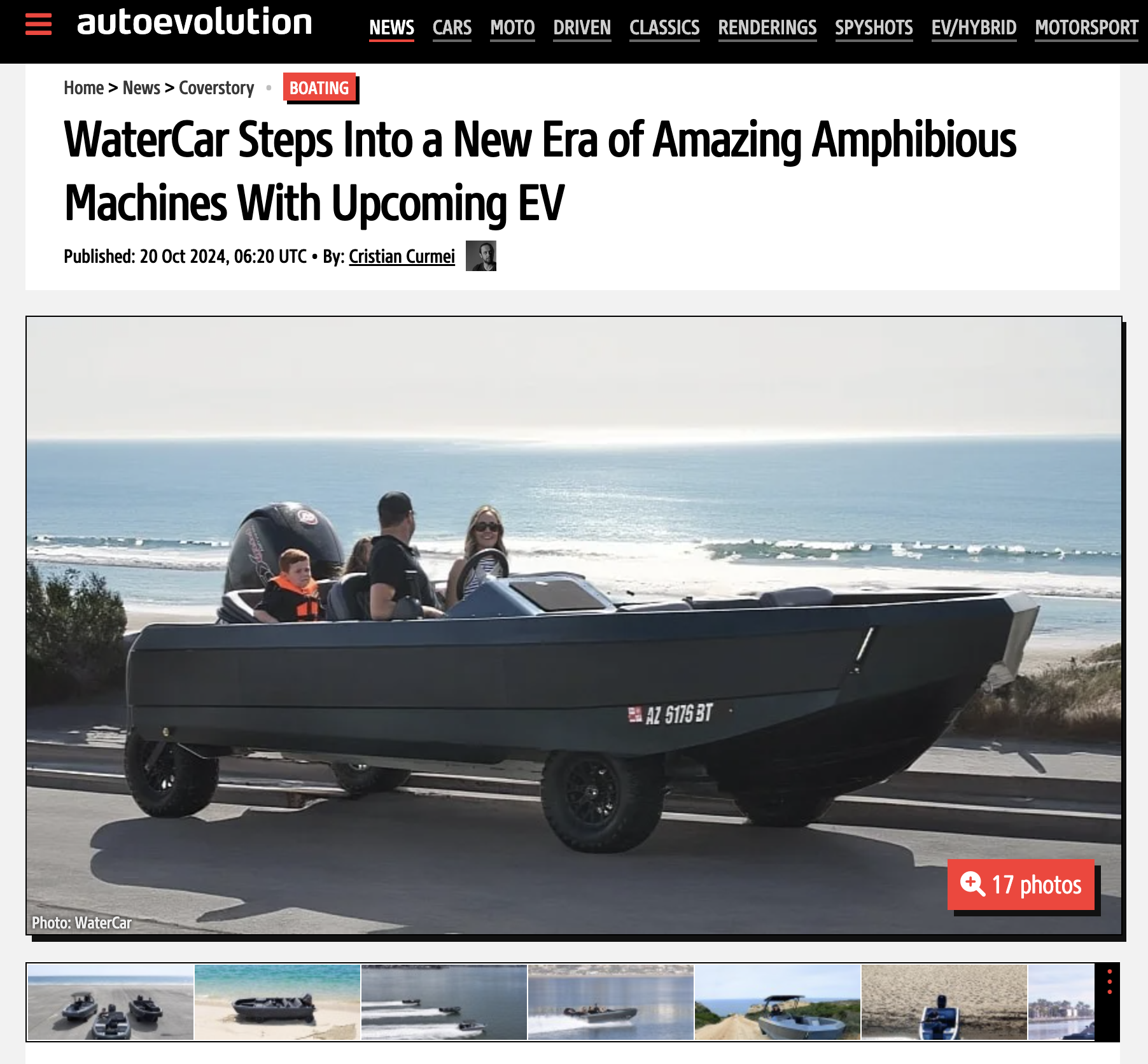 Reimagine boating with the WaterCar EV, a sleek neighborhood cruiser on land that transforms into an impressive 18-foot boat with a single push of a button. WaterCar Inc is the leader in amphibious boats & vehicles.