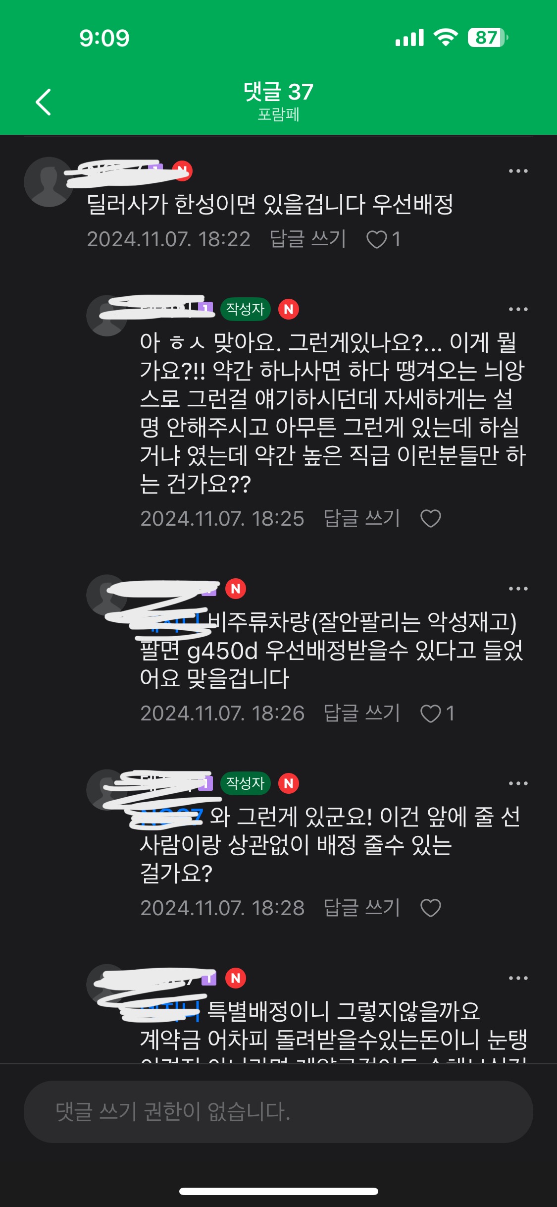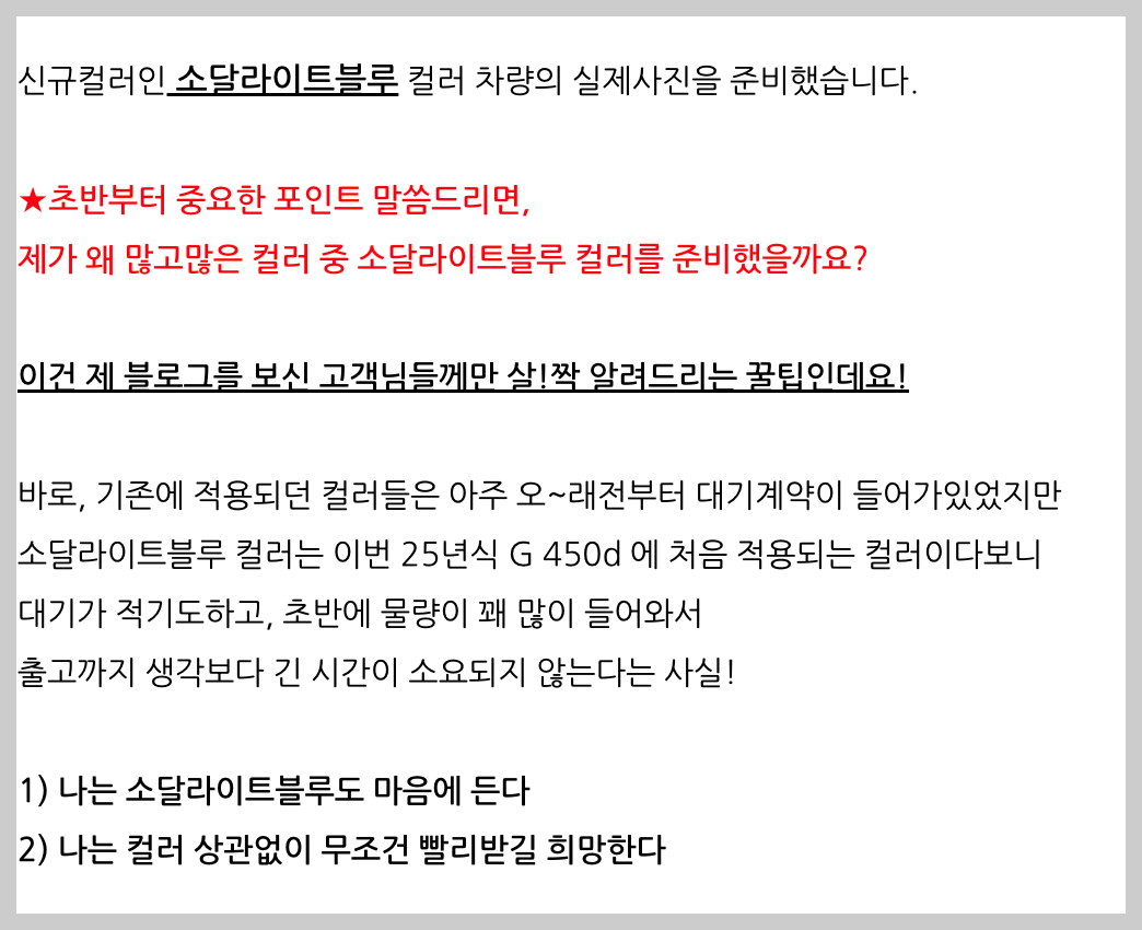 비인기 색상, 대기가 적다...G450d 사례로 본 G580 본문