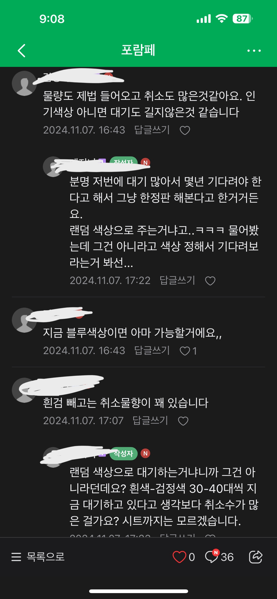 여전히 특정 색상은 인기가 많고 대기도 많은데...