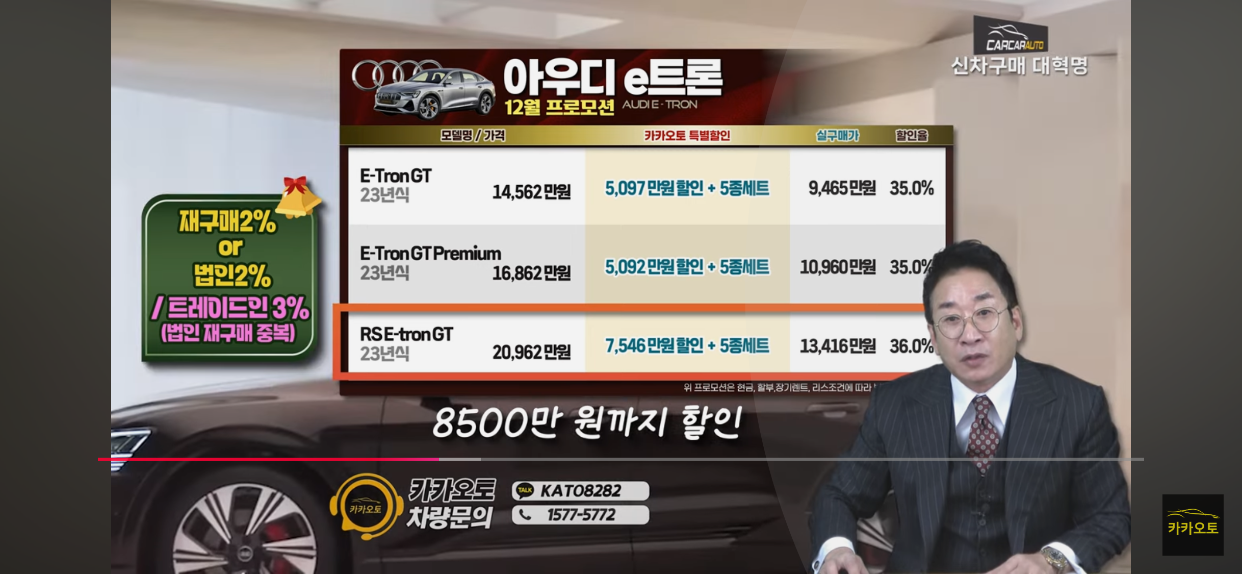 최근 이트론GT가 35% 할인에 2%(재구매)+3%(트레이드인) 해서 40% 이상 받아야 할 것이라고 했는데,