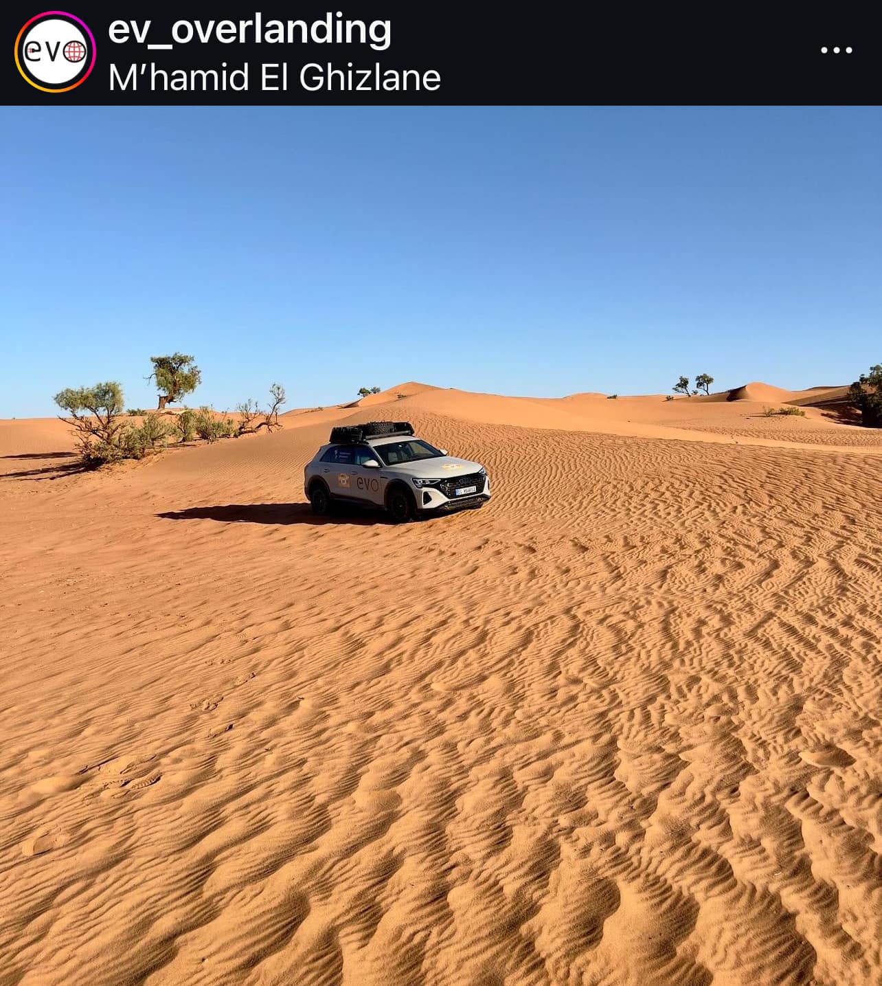 아래 영상 참가자는 Q8이트론에 AT타이어와 루프랙 등을 장착해 사막 및 오프로드 주행에 최적화함.