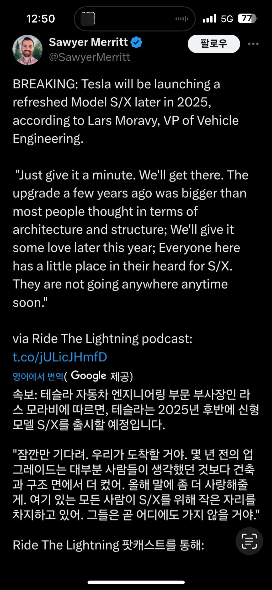 1. 현행 모델S와 모델X는 더이상 기대할 만한 업데이트 없을 듯 (범퍼 카메라나 깜빡이 스톡 등...)