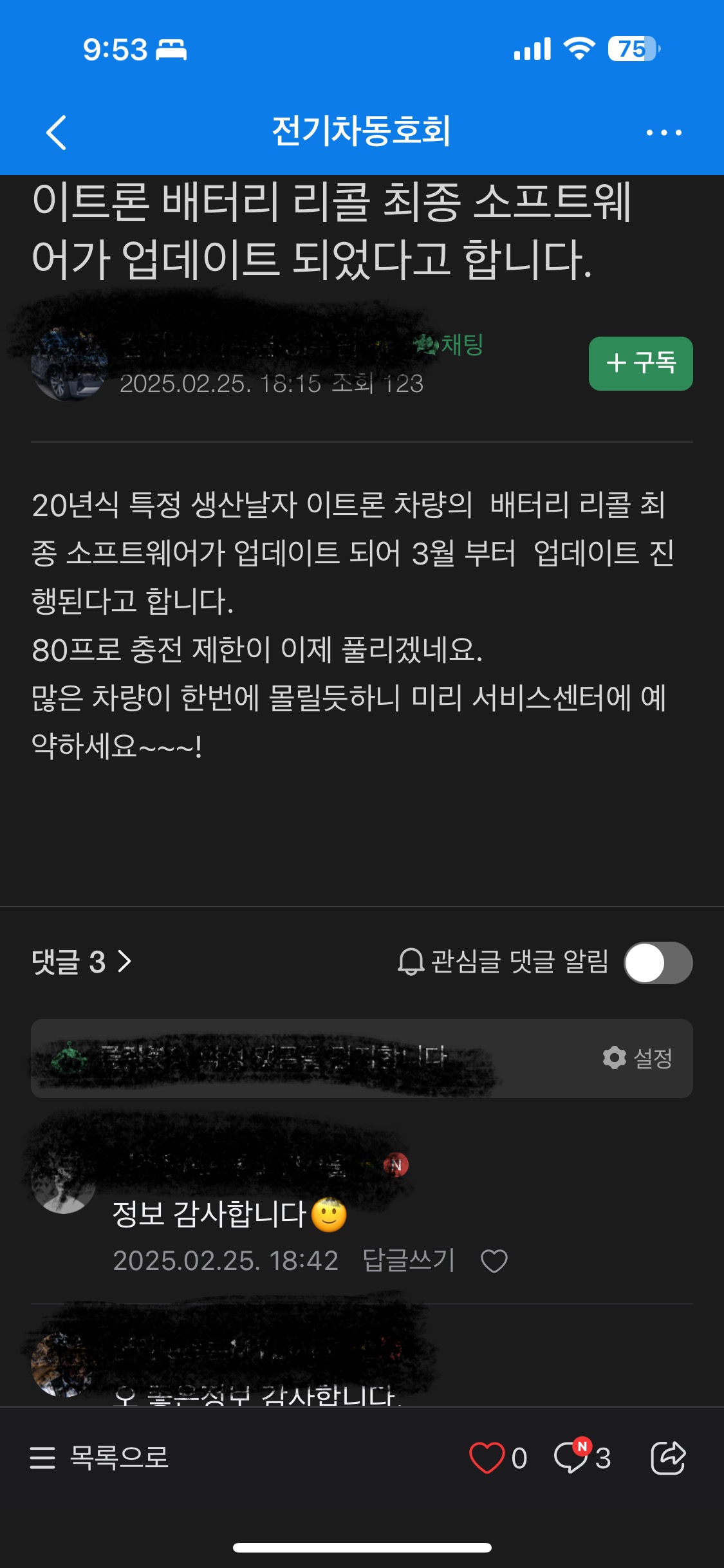 해외서도 이트론55 등 충전제한 80% 때문에 시끌