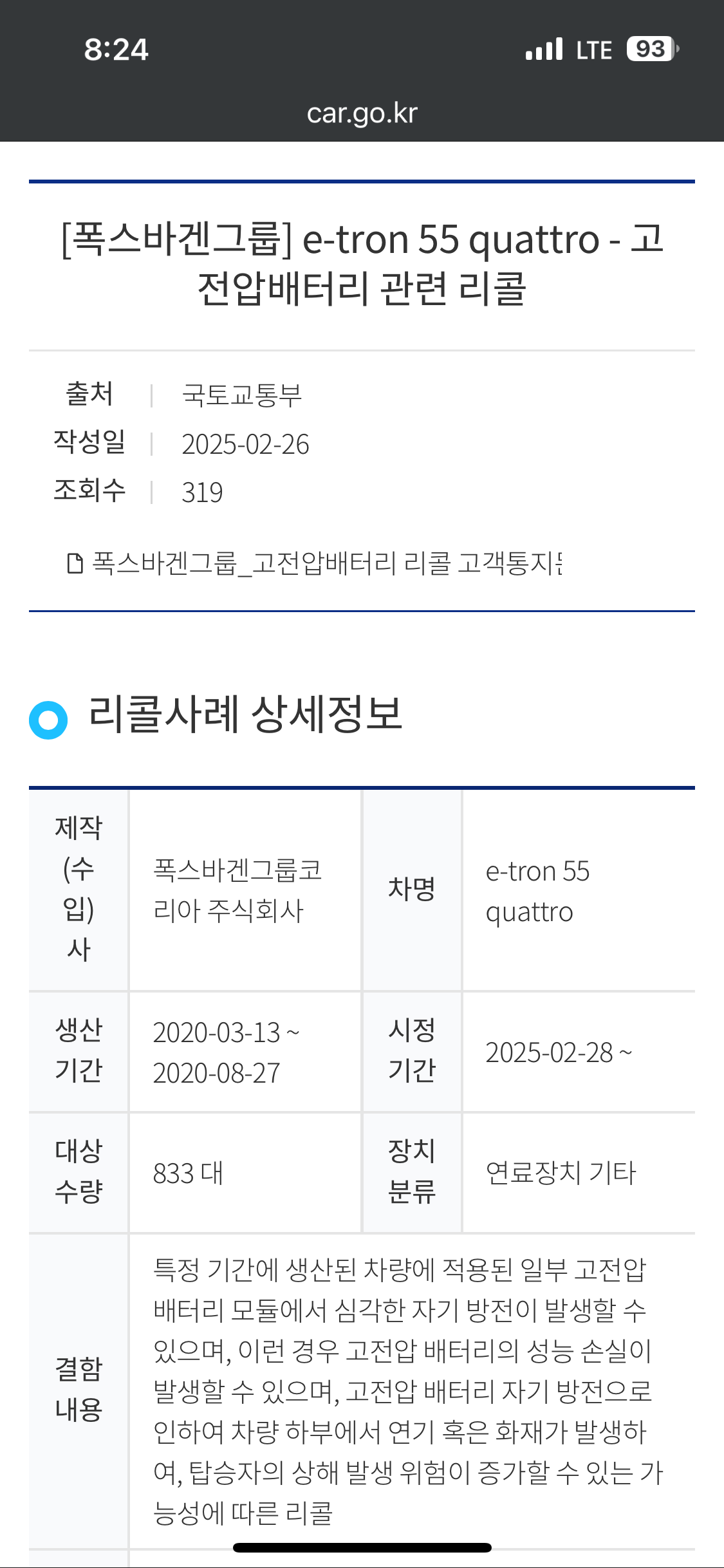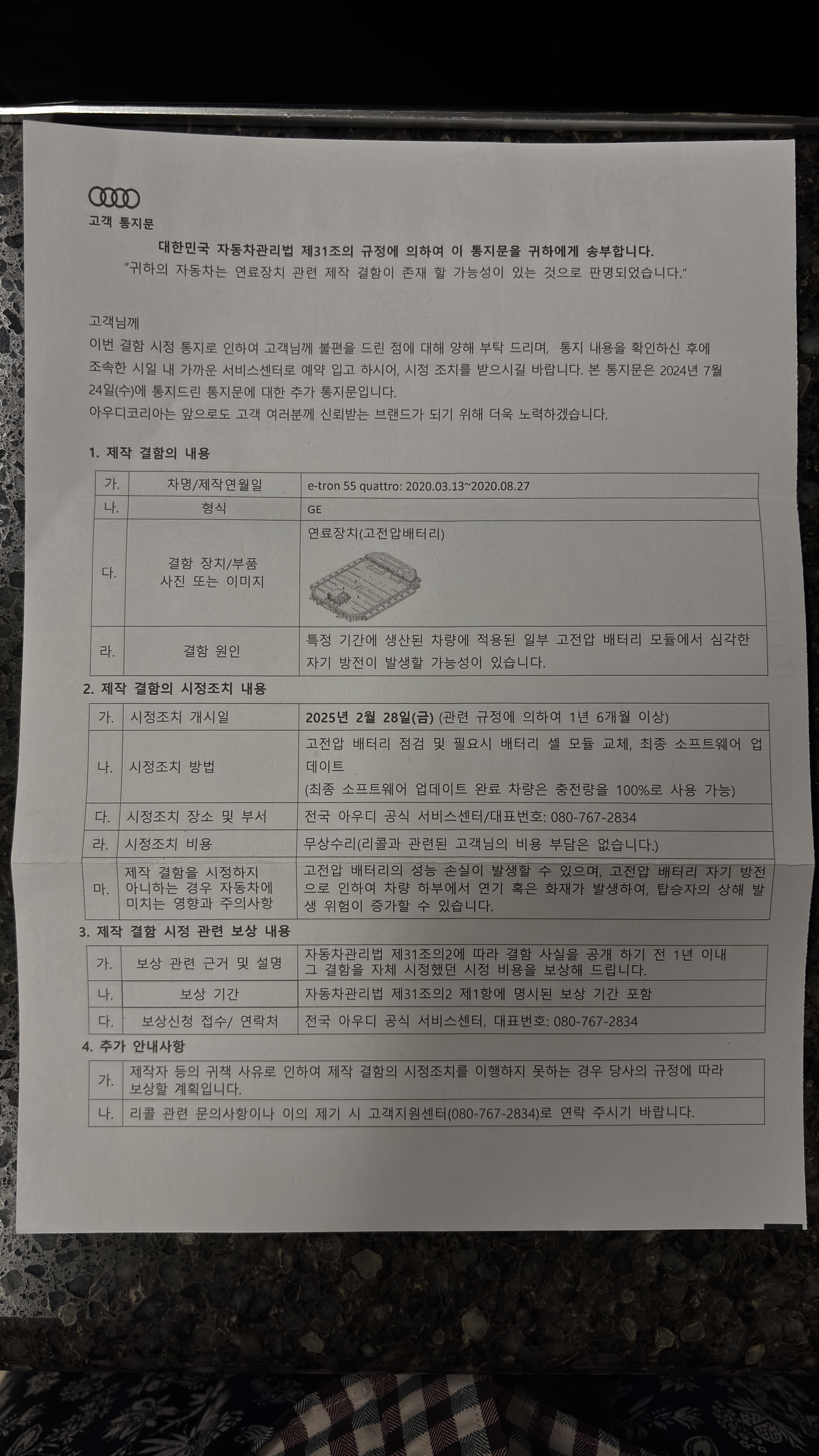 [공식] 이트론55 배터리 리콜 최종 업데이트 시작 본문