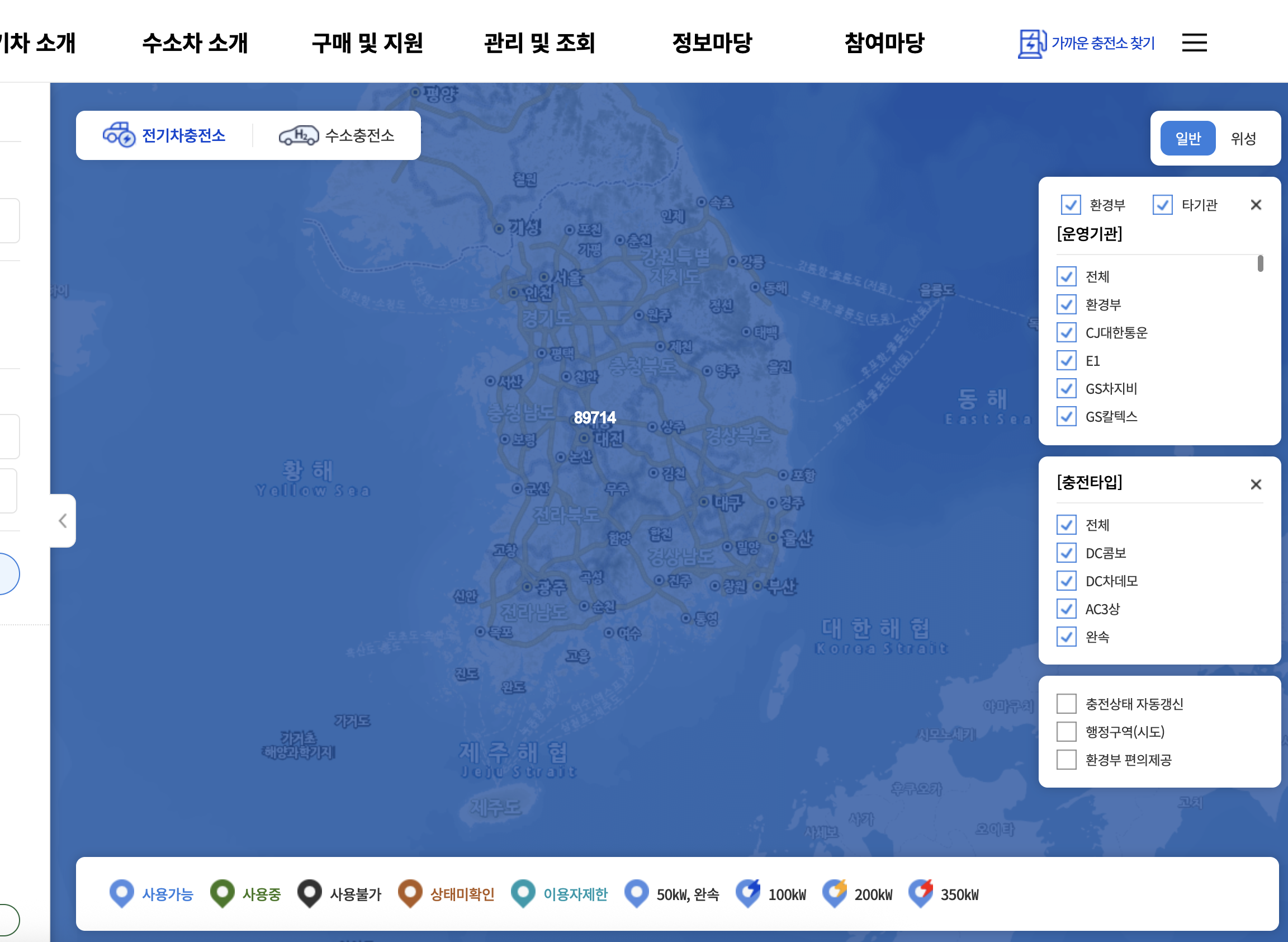 정말 완전 깡촌 아니면 웬만한 읍면 단위에도 공용 충전기가 다 있음.