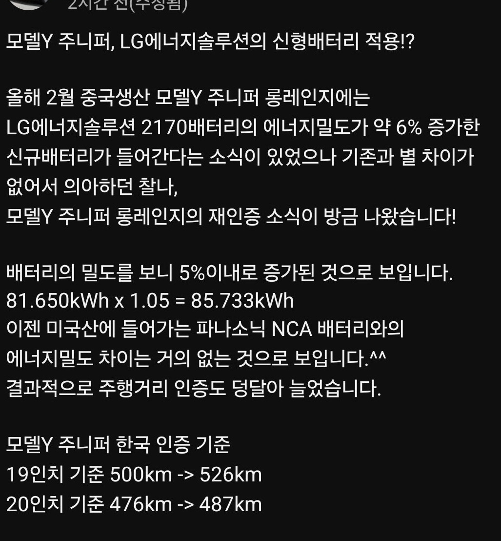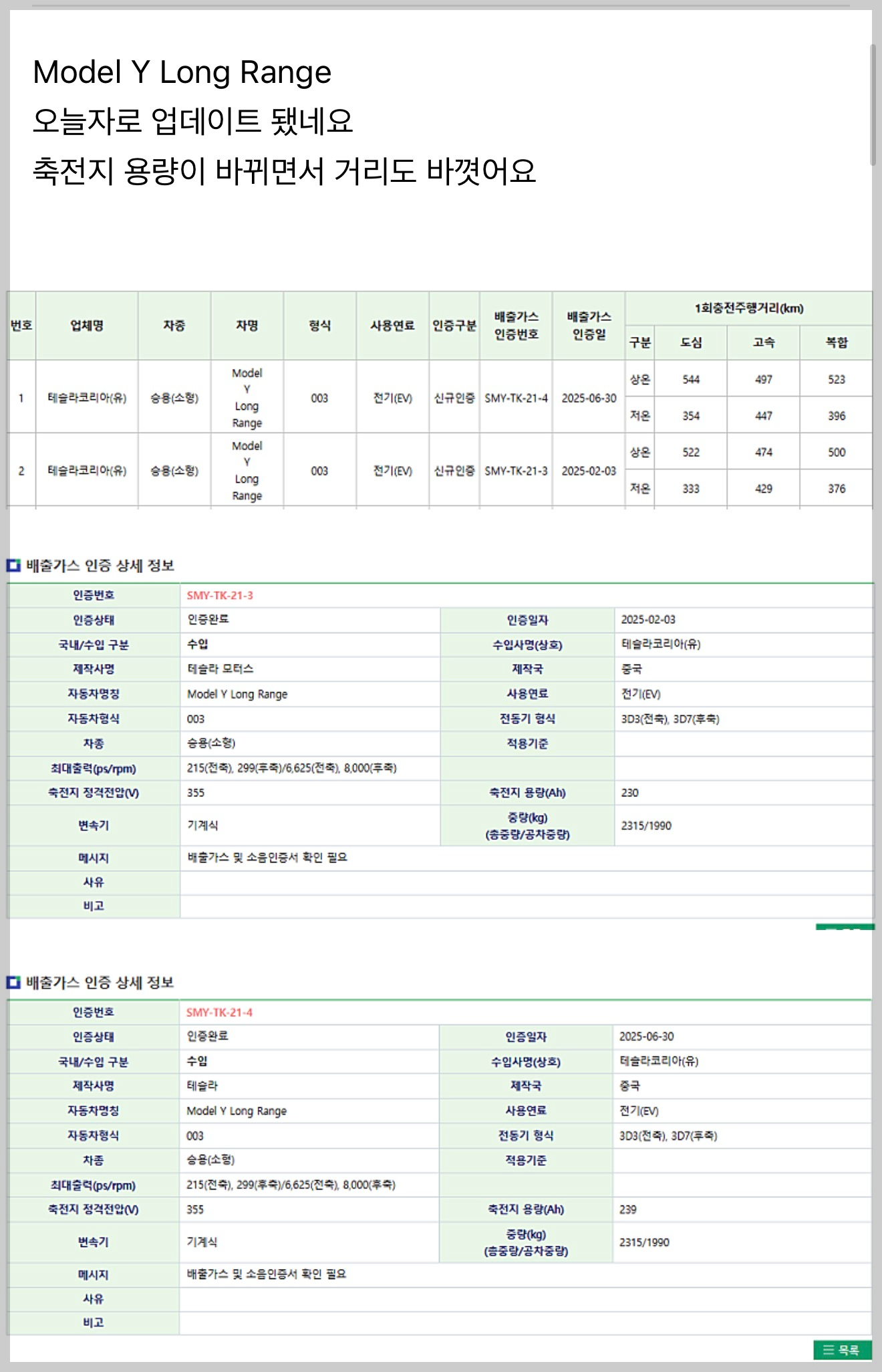 모델Y 롱레인지, 변경인증이 아니고 갑자기 신규인증? 본문