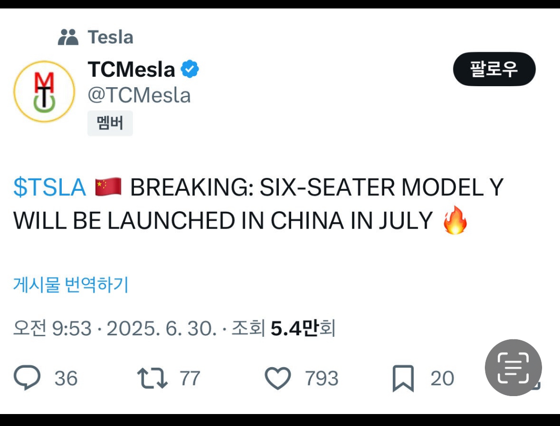 6월 30일에 모델Y 주니퍼 롱레인지가