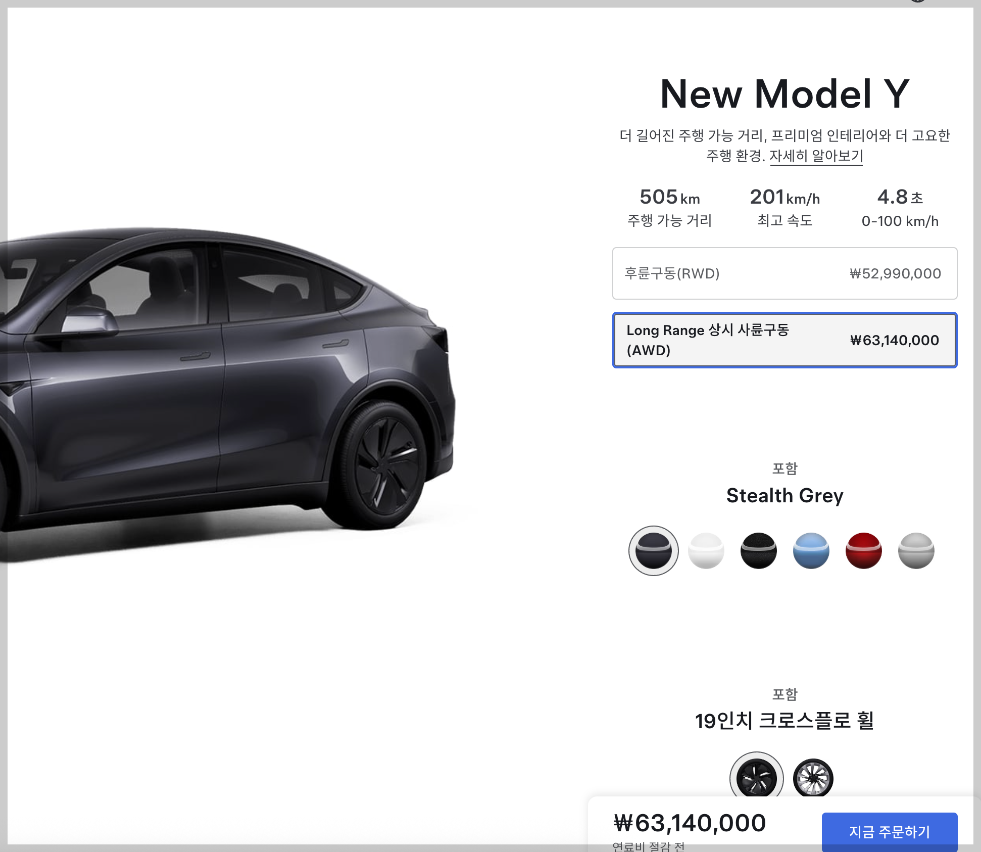 7월 1일 업데이트) 홈페이지 모델Y 롱레인지 주행가능거리 정보가