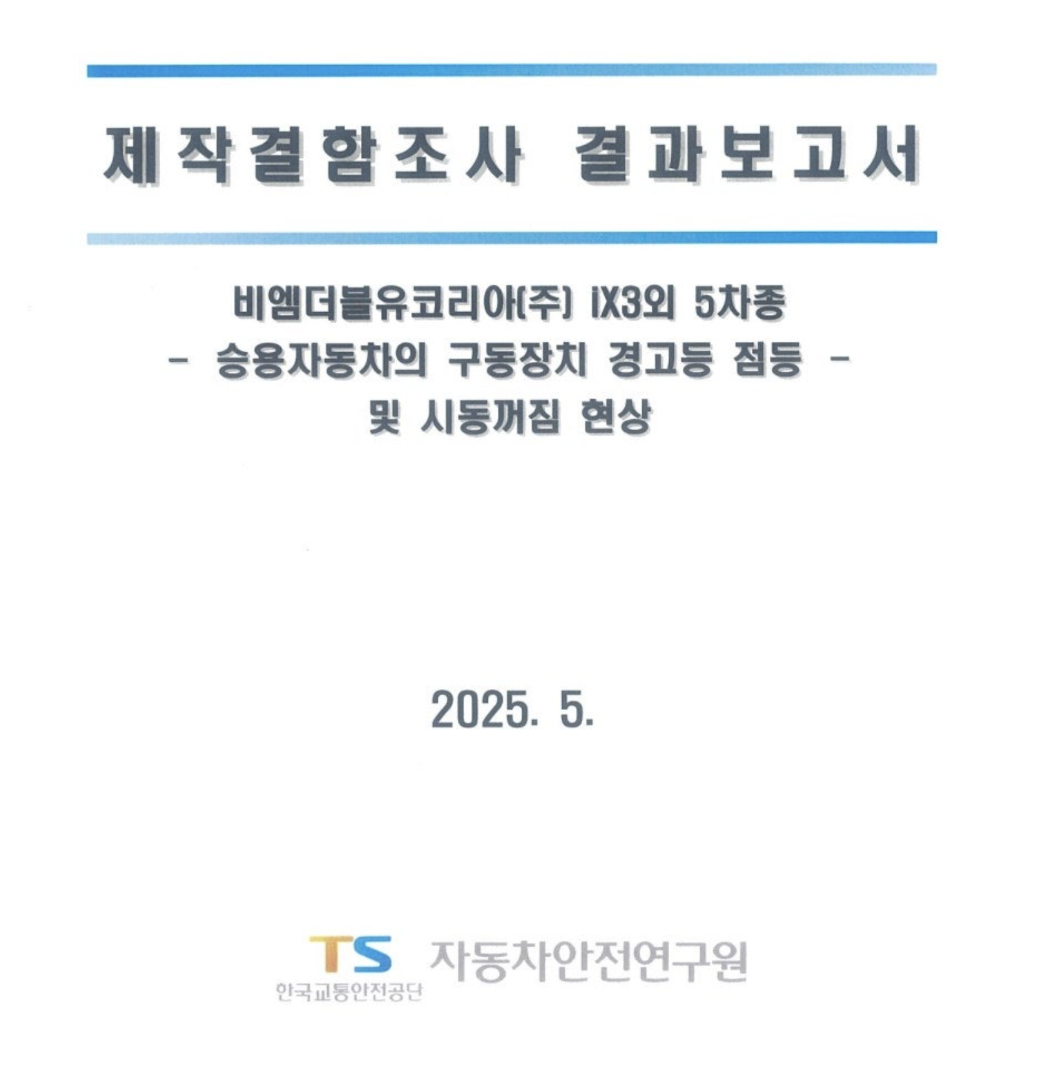 자동차관리법 제31조(제작 결함의 시정 등) 제4항에 따라 국토교통부로 부터 지시를 받아 제작결함조사를 시행하여 리콜로 결정된 조사 건에 대한 결과보고서입니다. ※ 결과보고서 내용 중 자