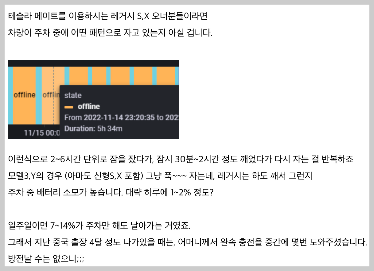 테슬라를 세워 뒀는데 전기가 증발? 그것도 상당량이? 본문