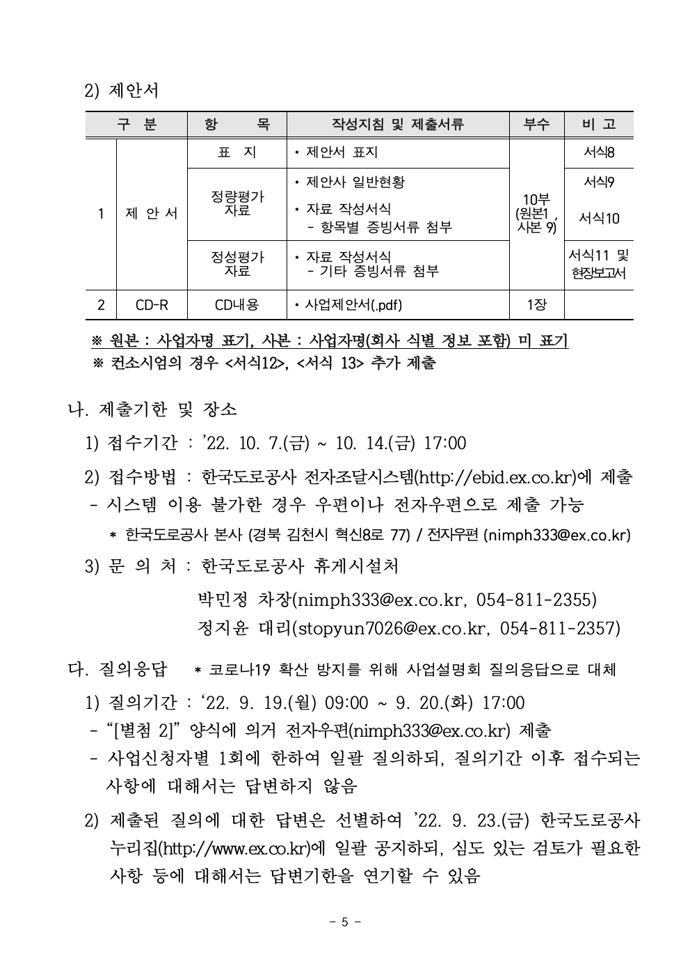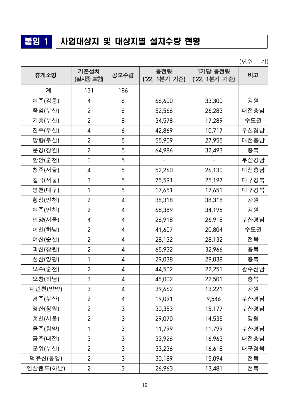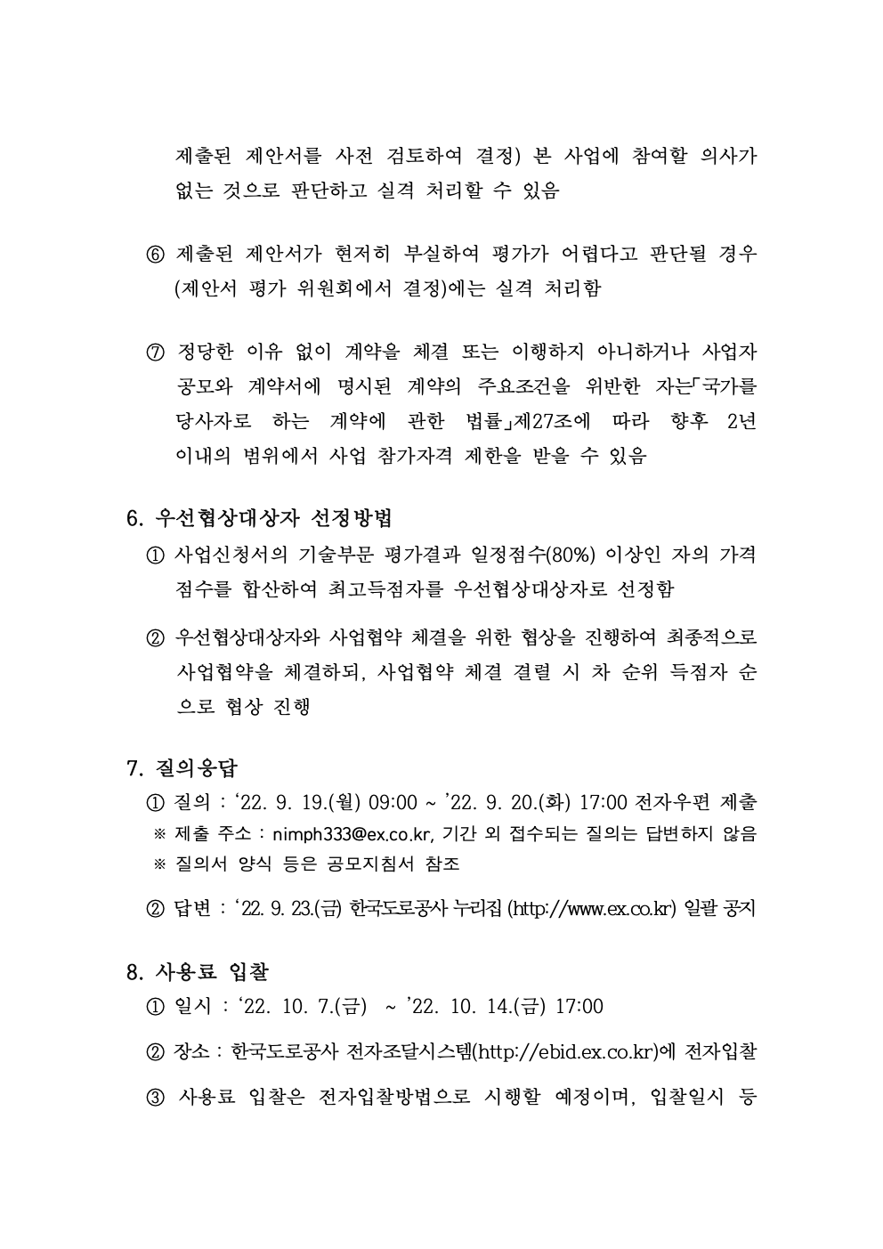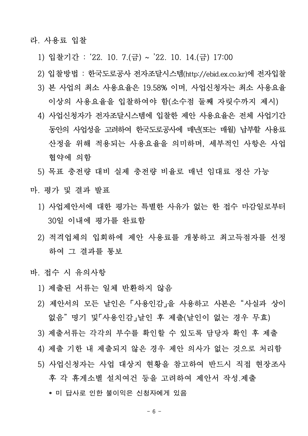 | 고속도로 휴게소 전기차충전기 설치·운영 민간사업자 공모를 위한 모집공고문, 공모지침서 등 알림 | 2022-09-07 |