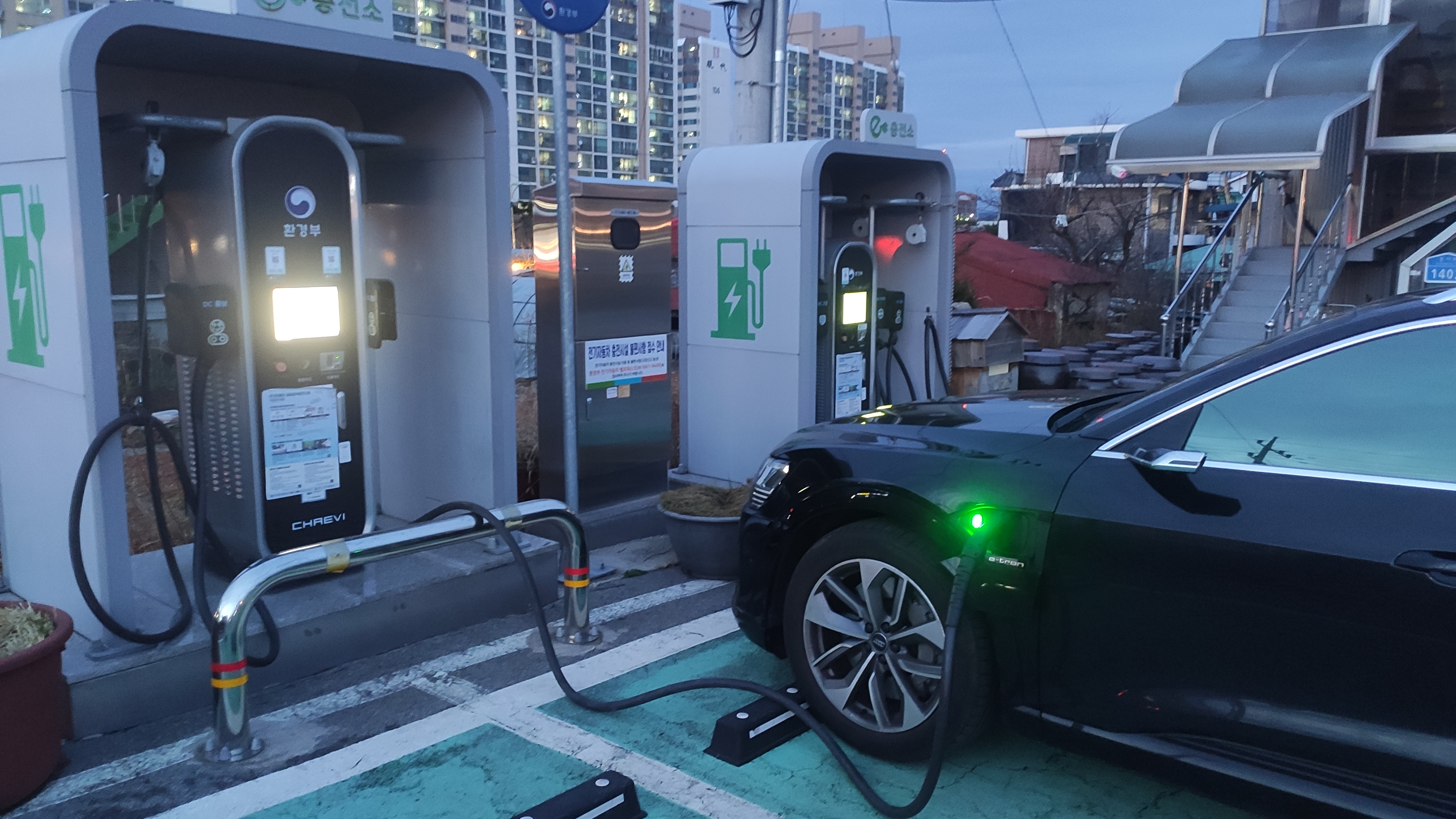 4. 각종 외부 공용공간에 설치된 완속 충전기. (대부분 7kw 급)