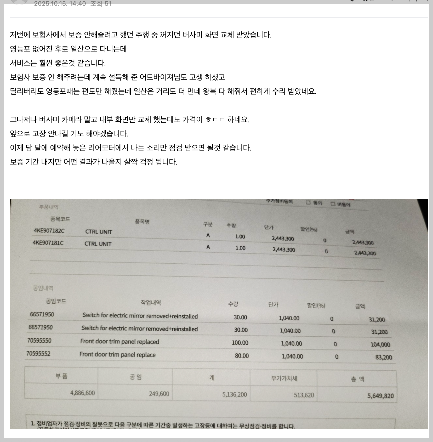 수리보다는 교체가 불가피한데... 역시 금액이 ㄷㄷ