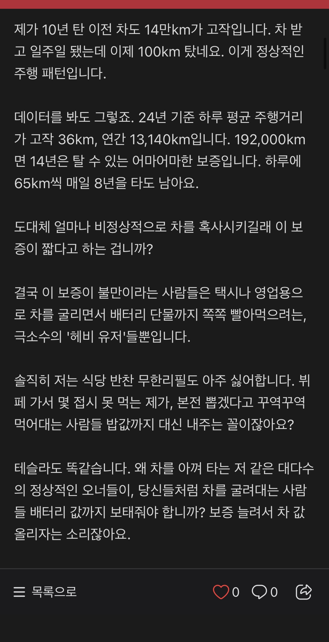 (1년 2만km 타는 기준으로, 보증 10년이면 해줄 만큼 해주긴 한거임)