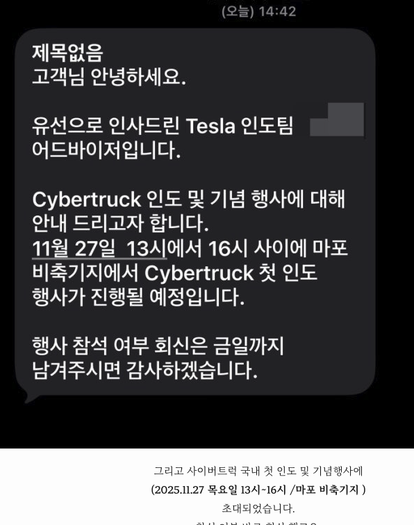 테슬라 사이버트럭 국내 첫 인도행사 초대! 테슬라 사이버트럭 차량 인도 준비 과정 잔금 결제