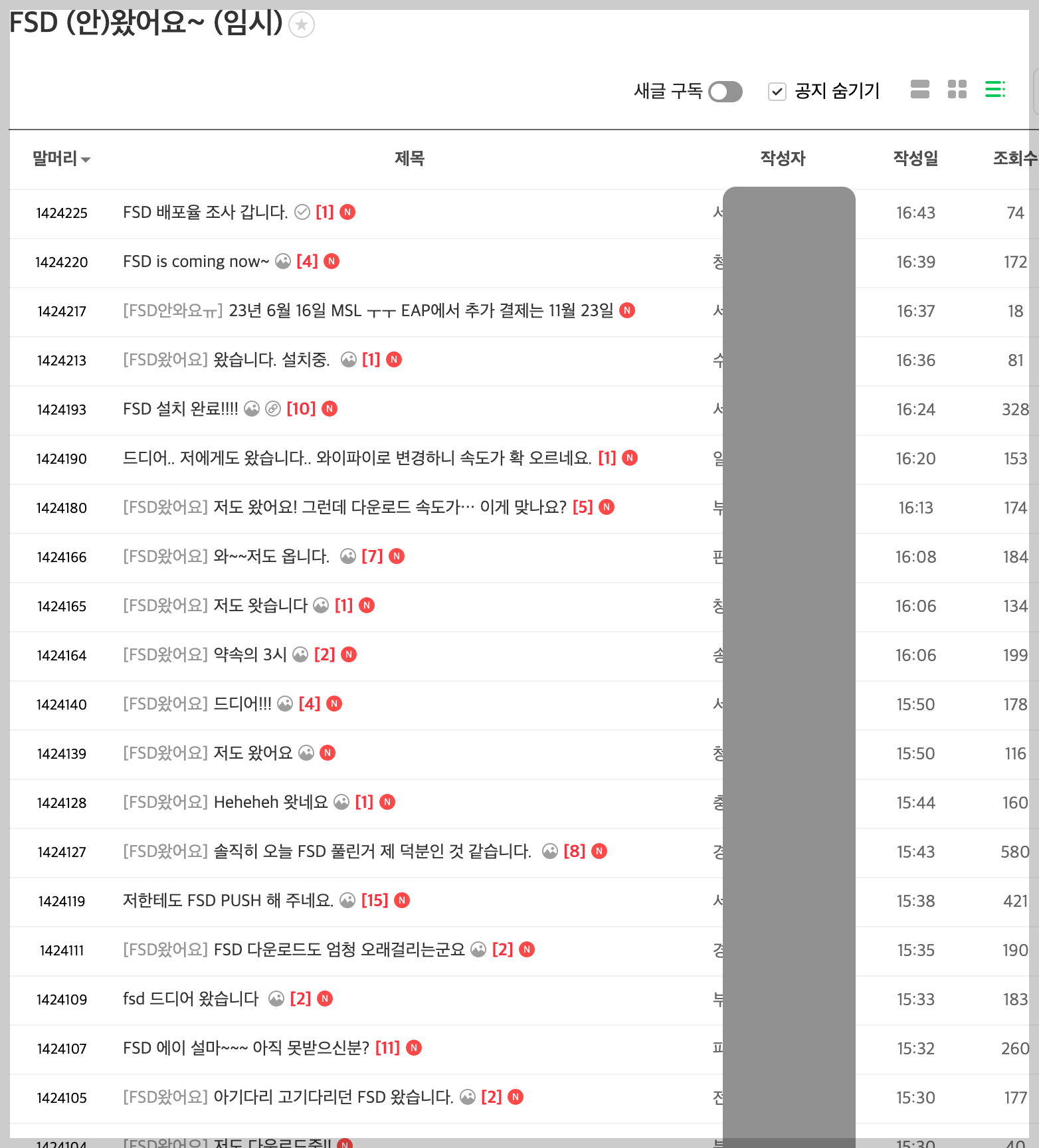 분단위로 FSD에 환호하는 글이 지금 미친듯이 올라오는데