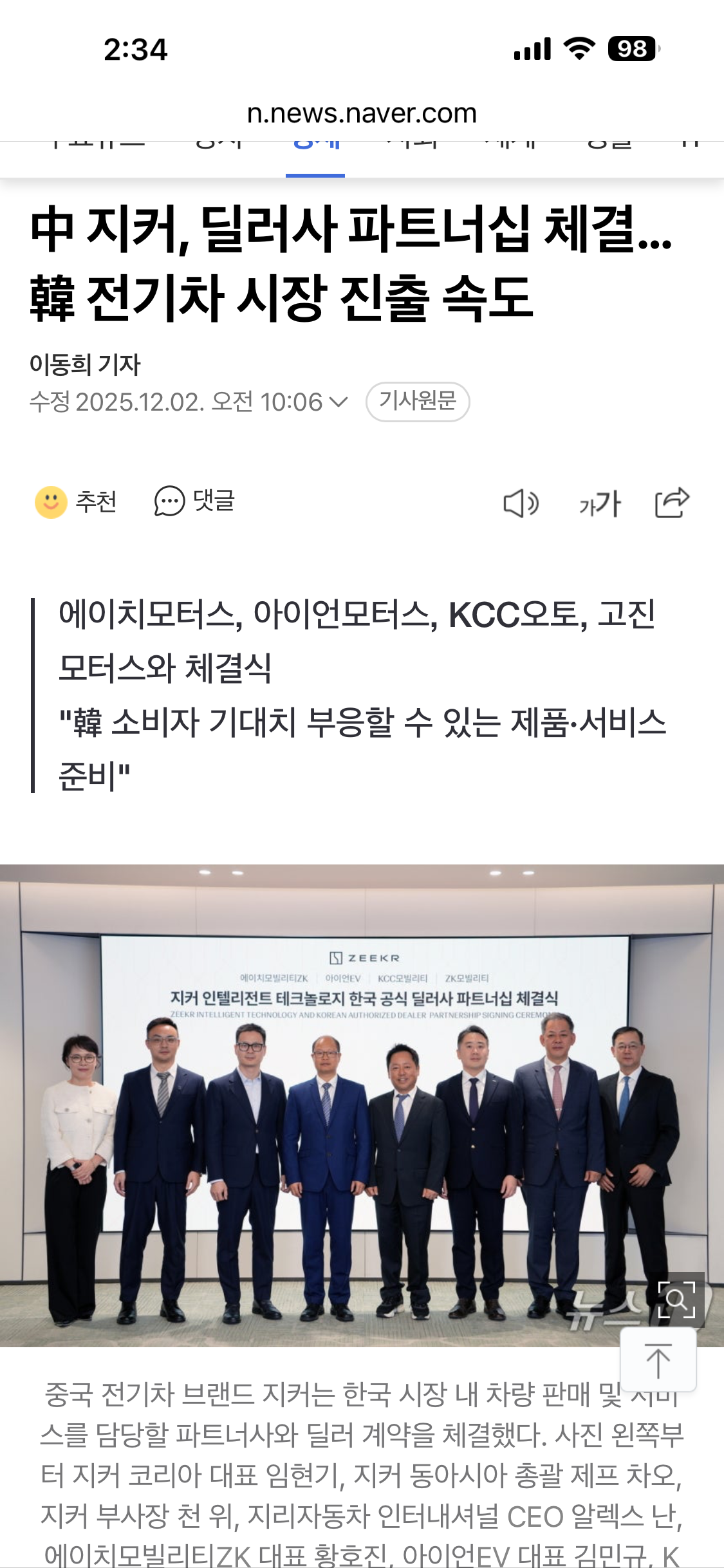 중국 전기차 지커, 한국진출 딜러사 4곳 공식 발표 본문