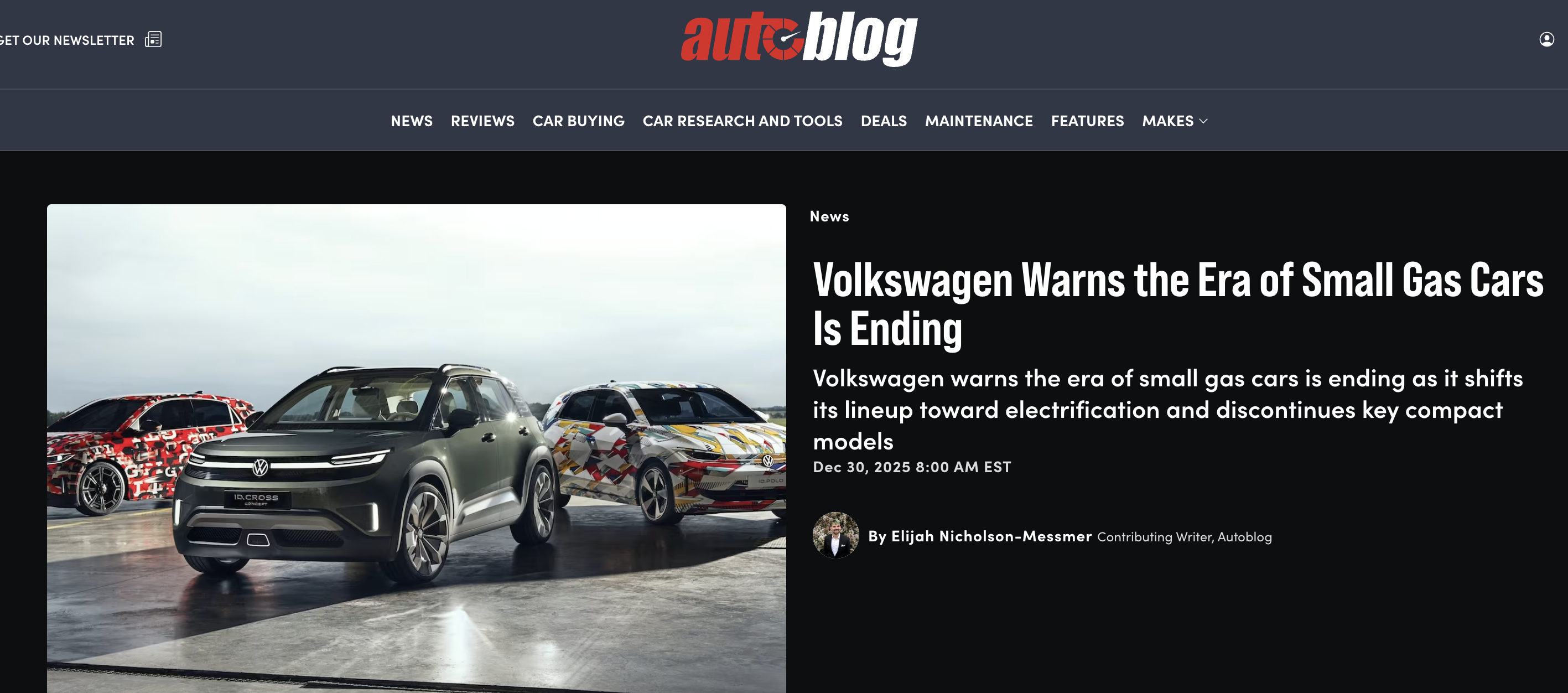 출처 https://www.autoblog.com/news/volkswagen-warns-the-era-of-small-gas-cars-is-ending