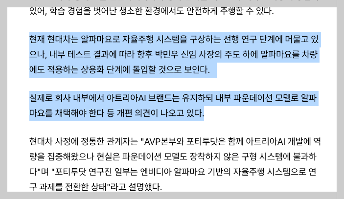 현대 자율주행 '아트리아' 개판 확인...알파마요 도입? 본문