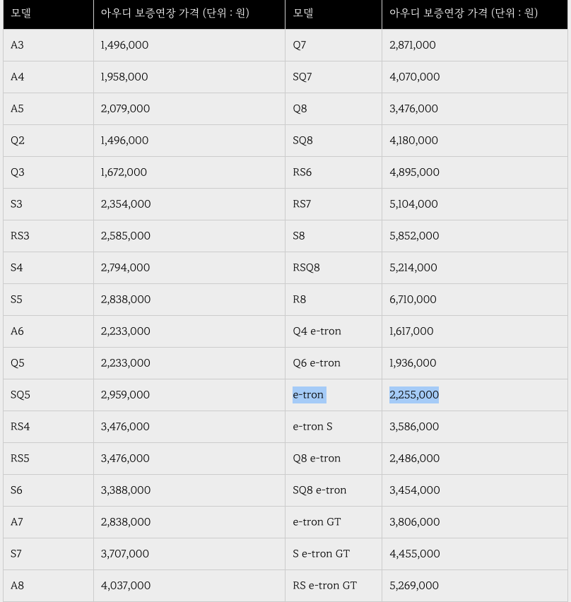 5년째 이트론55, 아우디 정식보증연장 상품 고민? 본문