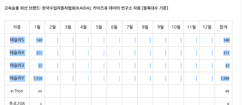 테슬라 모델Y야 뭐 잘 팔리는 건 맞고,