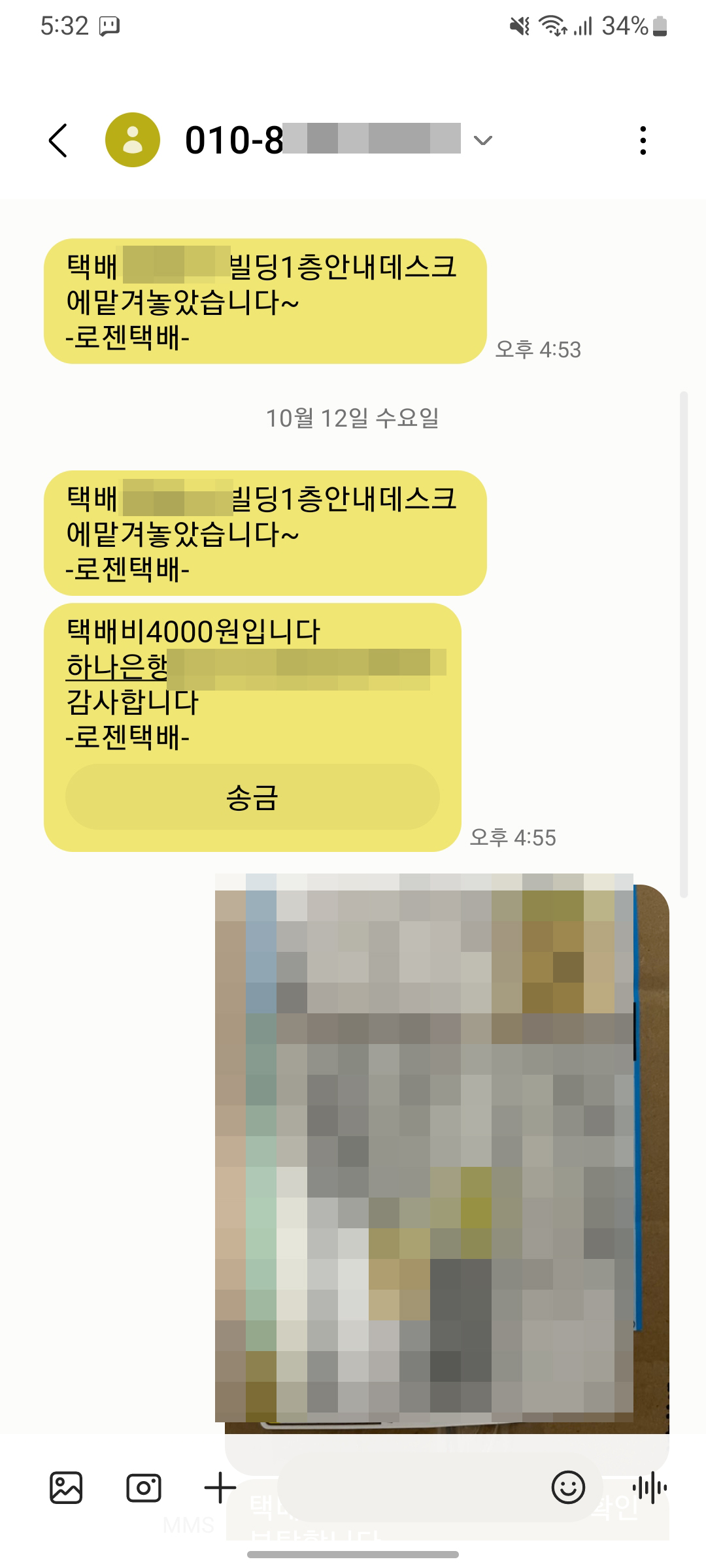 이후에 로젠택배에서 온 문자가 가관이다.