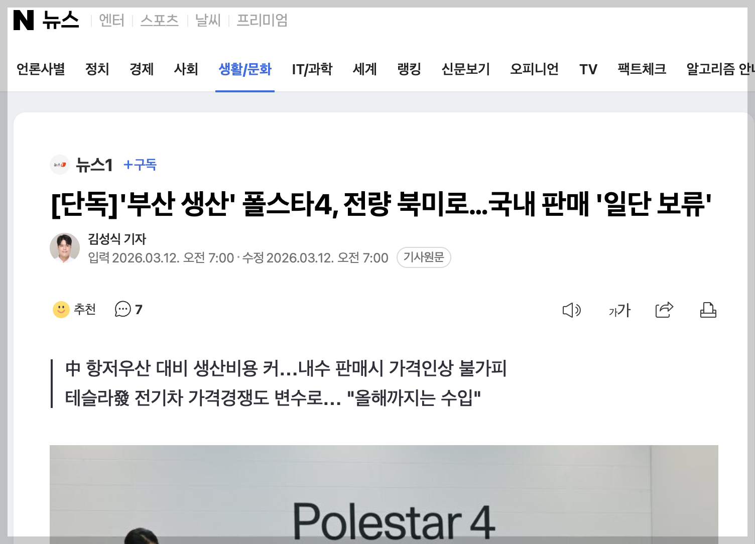 "한국에서 만들면 비싸서 안돼요" 폴스타4 현 상황 본문