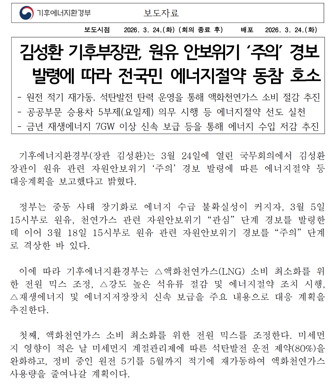 공공부문 車5부제 강화엔 "민간도 동참해야" "민원인 어떻게 막나" 최원정 최윤선 정지수 기자 = 24일 정부가 발표한 '범국가적 에너지 절감 캠페인'에 대한 시민들의 반응은 엇갈렸다. "정부 방침