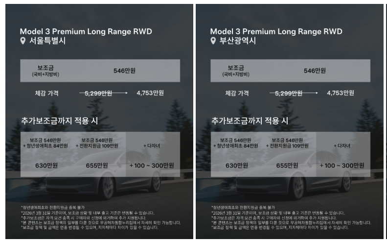 전국 보조금 80% 이상 소진 - Model 3 Premium Long Range RWD 주문 안내