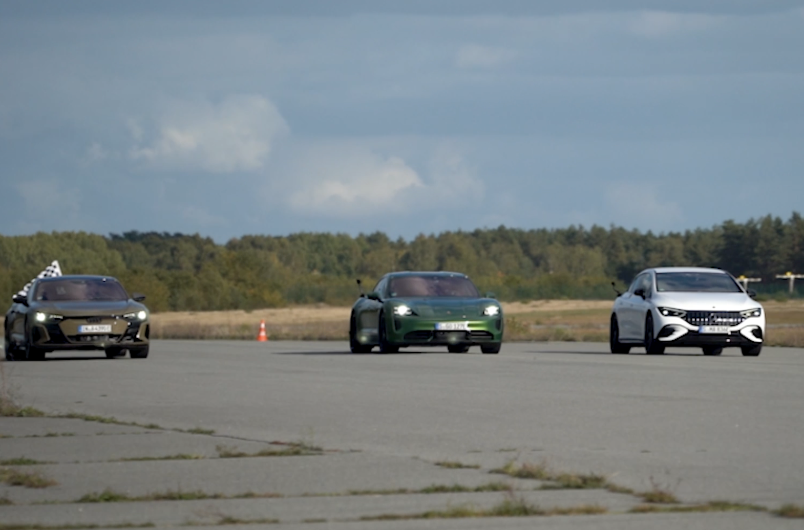 Kampf der E-Limousinen: Porsche Taycan Turbo tritt gegen seine Rivalen, Mercedes-AMG EQE 53 und Audi RS e-tron im Drag Race an.