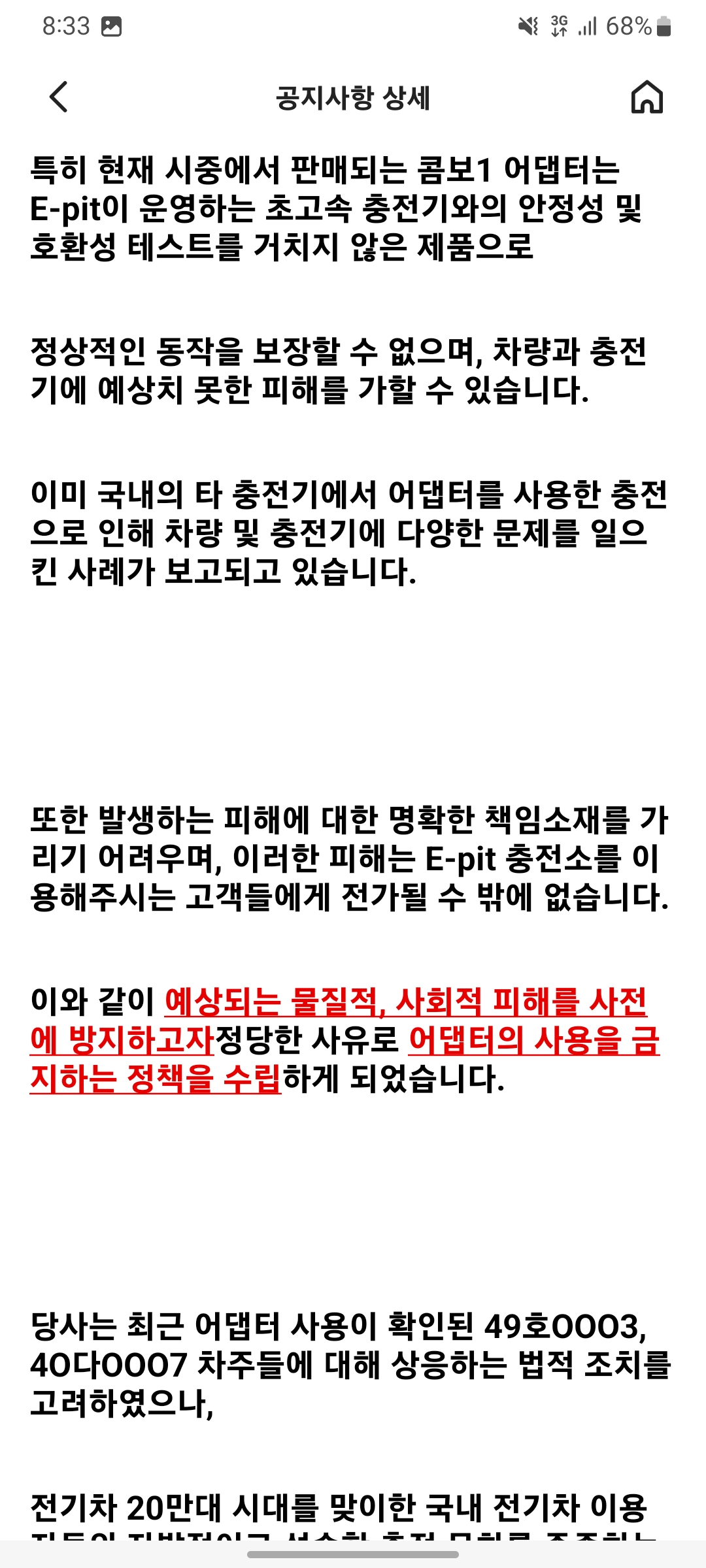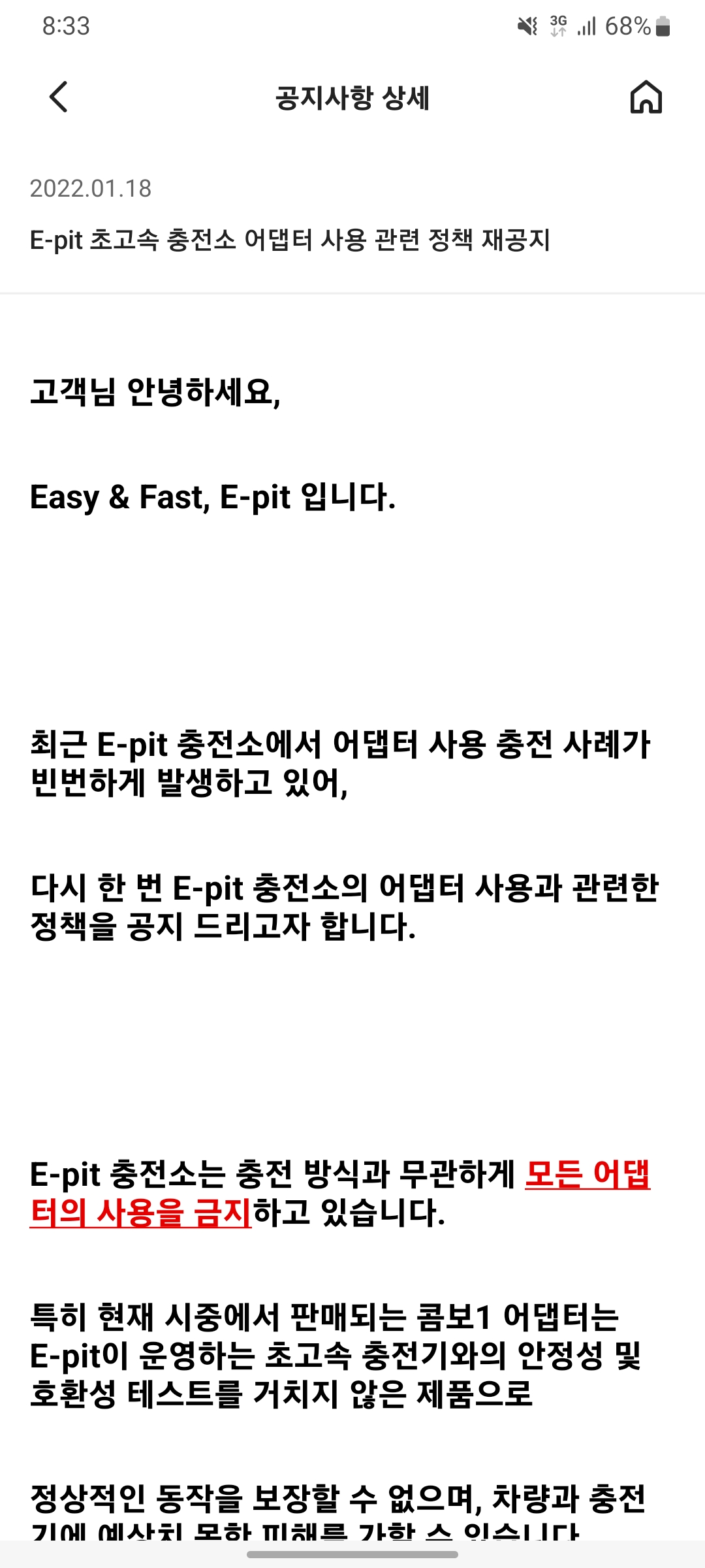 이핏에서 공식적으로 어댑터를 사용하지 말아 달라고 부탁했고