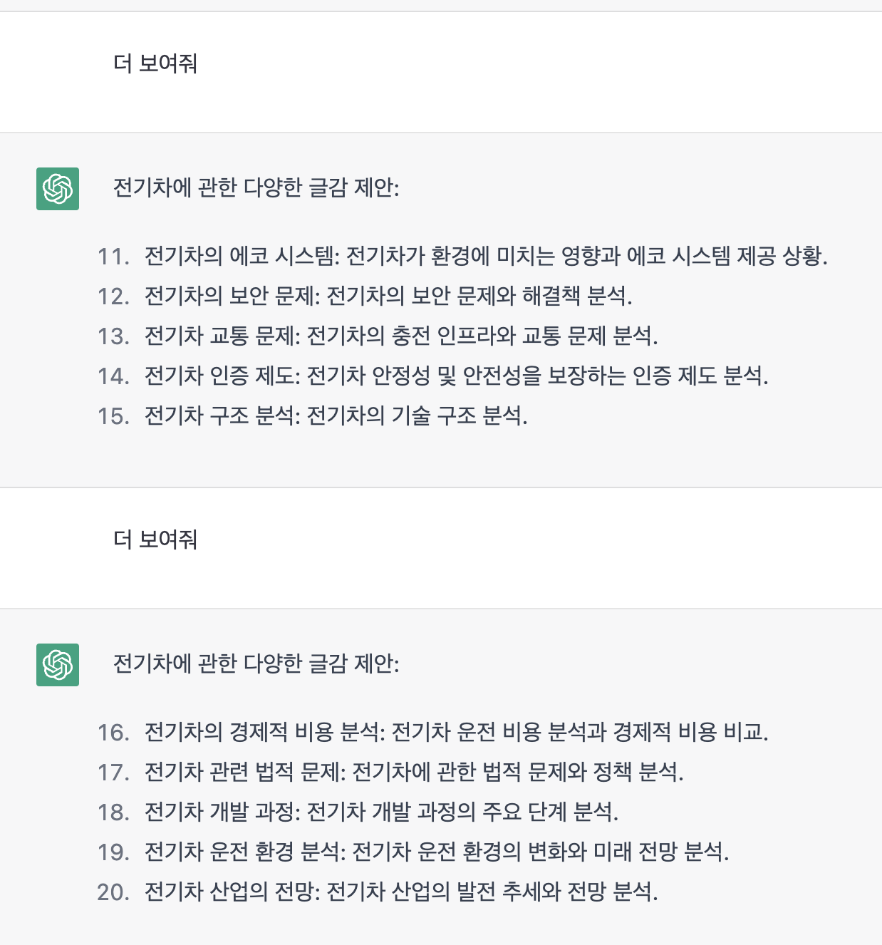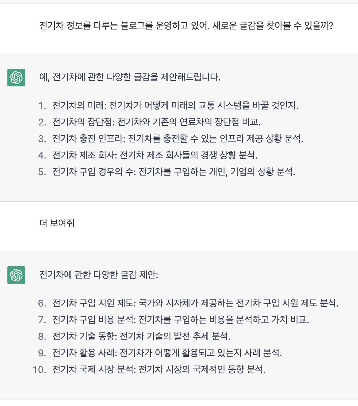 ChatGPT가 쓰는 전기차 관련 블로깅 글감 20개 본문