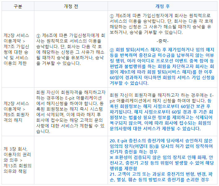 이핏에서 충전 어댑터 쓰면 안된다...개정약관에 명시 본문