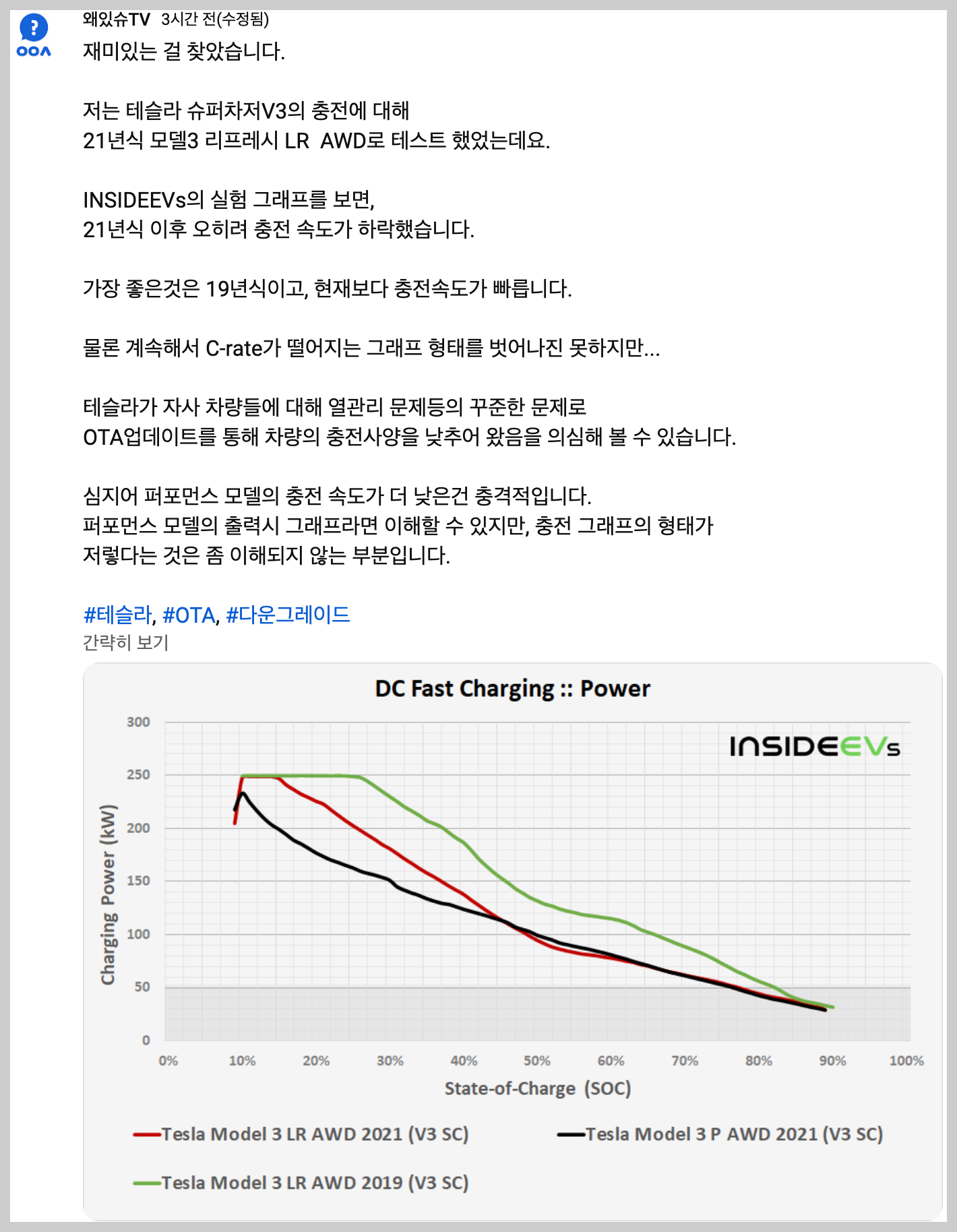 자료 출처 https://insideevs.com/news/519382/tesla-model3-82kwh-charging-analysis/