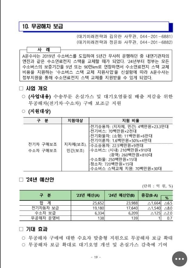 전기차 지원금도 구조조정 대상에 올랐다. 정부는 올해 2조5652억원을 배정했던 무공해차 보급사업의 내년 예산을 2조3988억원으로 올해보다 1600억원가량 줄였다. 전기차 보조금 단가를 현행 500만원에서 100만원 인하하는 데 따른 감액이다. 이미 전기차 보급률이 일정 궤도에 올랐다는 판단에서다. 정부는 다만 올해 67만대 수준인 전기차 보급 대수를 내년 96만6000대까지 확대한다는 계획이다.