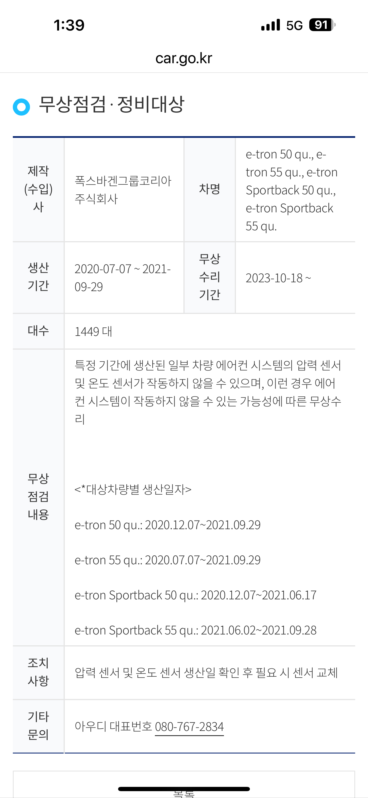 리콜 조치도 함께 해 달라고 요청하면 될 듯 하다.