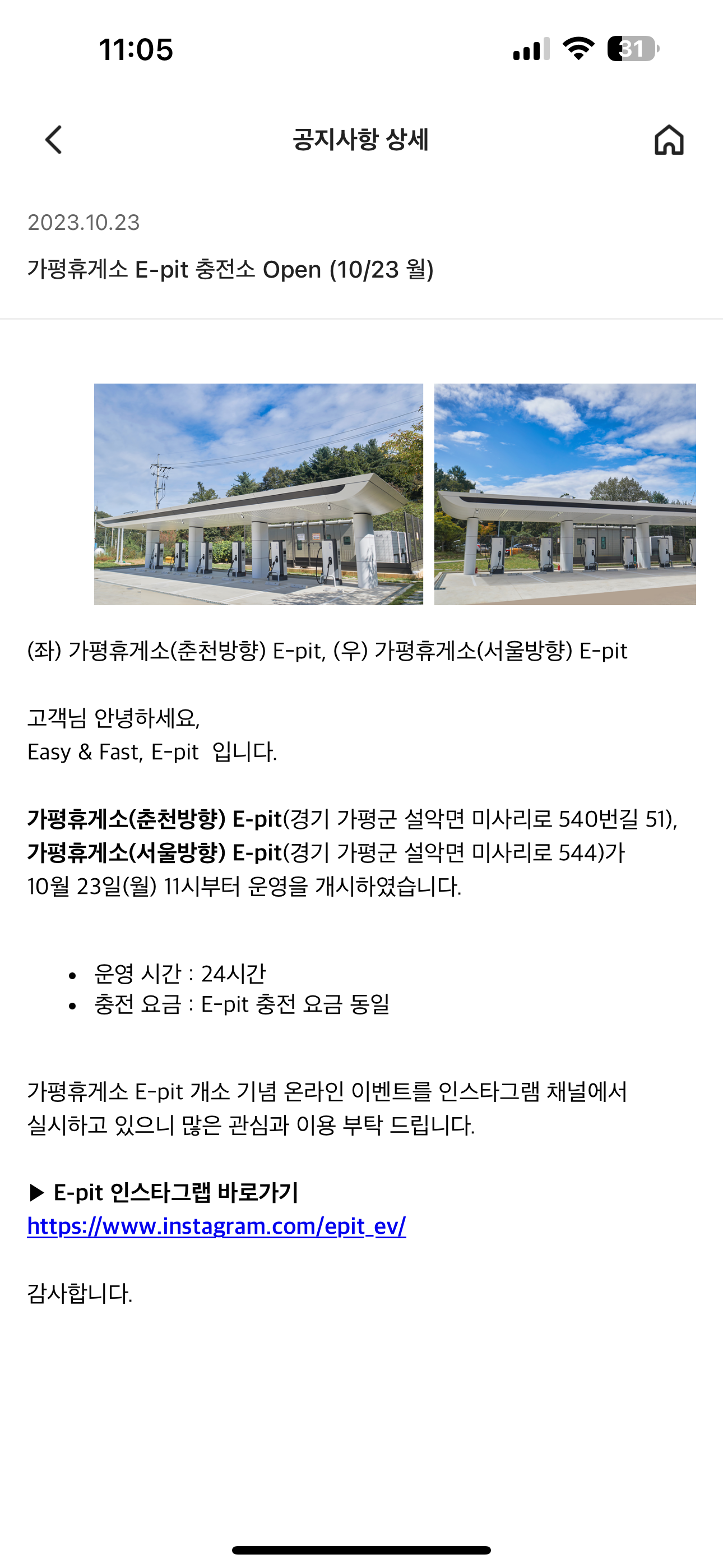 가평 휴게소 양방향에 이핏 충전소 생겼다 본문