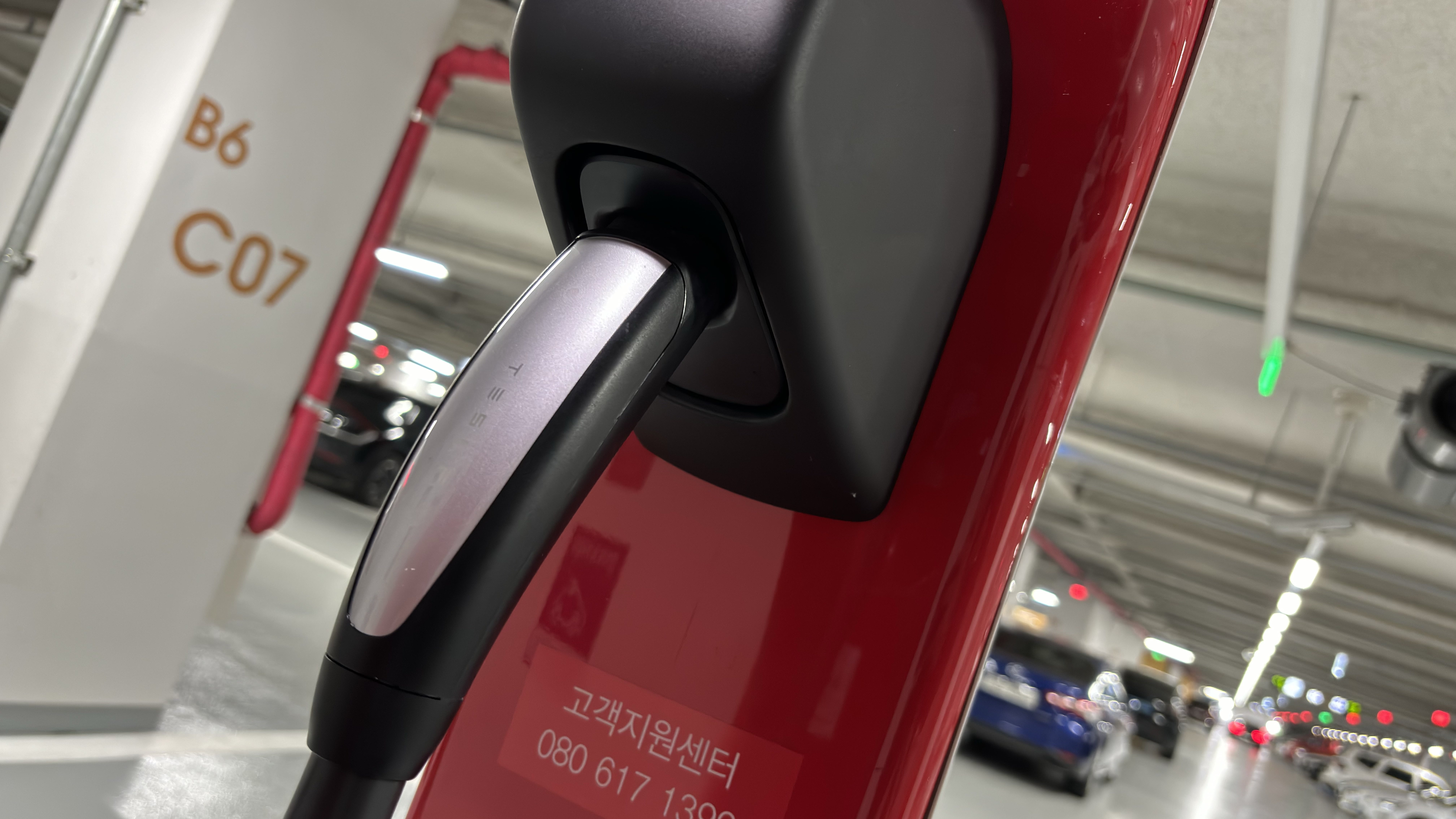 사실 국내 상당수 테슬라 충전기들은 정중앙에 있는 게 아니라, 충전장치가 운전석 쪽으로 치우쳐 져 있다.