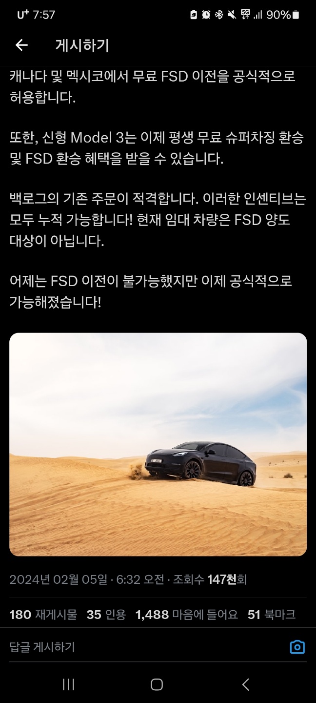 (한국도 모델3 하이랜드 출시하면 동일 이벤트 할 가능성이 아주 높아 보임)