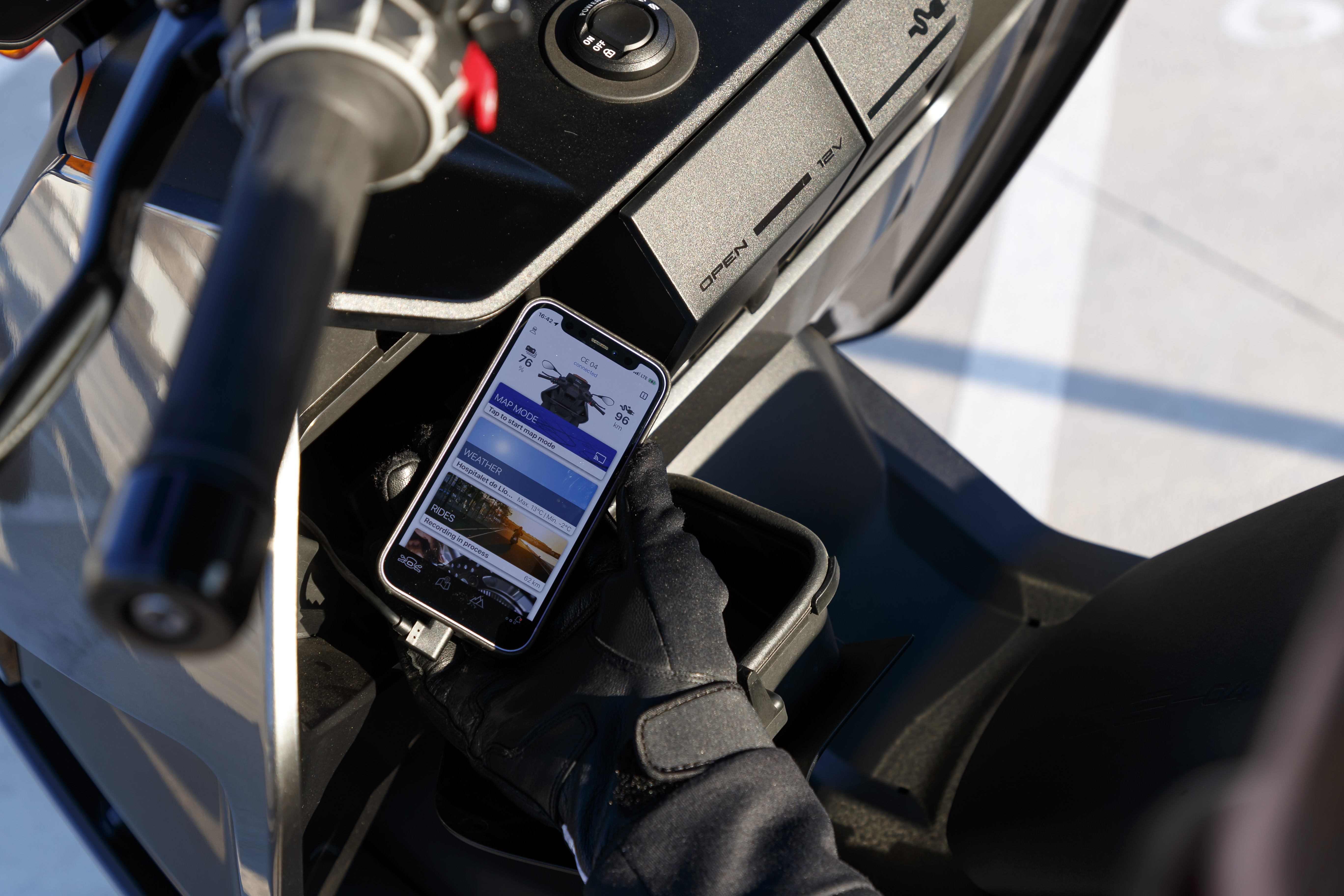 - Actively ventilated mobile phone charging compartment with USB-C charging port.