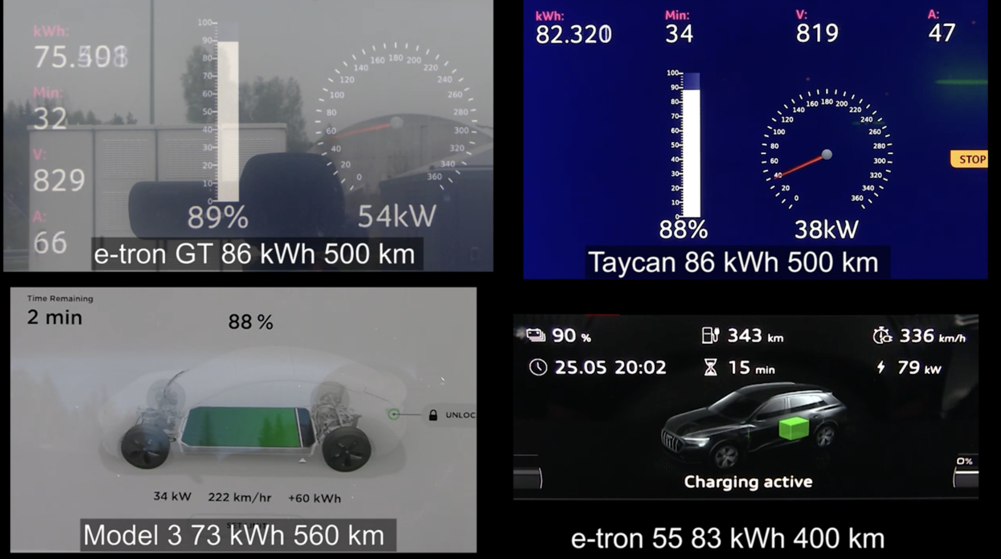 그런데 실제로 800V 충전 시스템으로 270kw 초고속 충전을 자랑하는 이트론GT나 타이칸