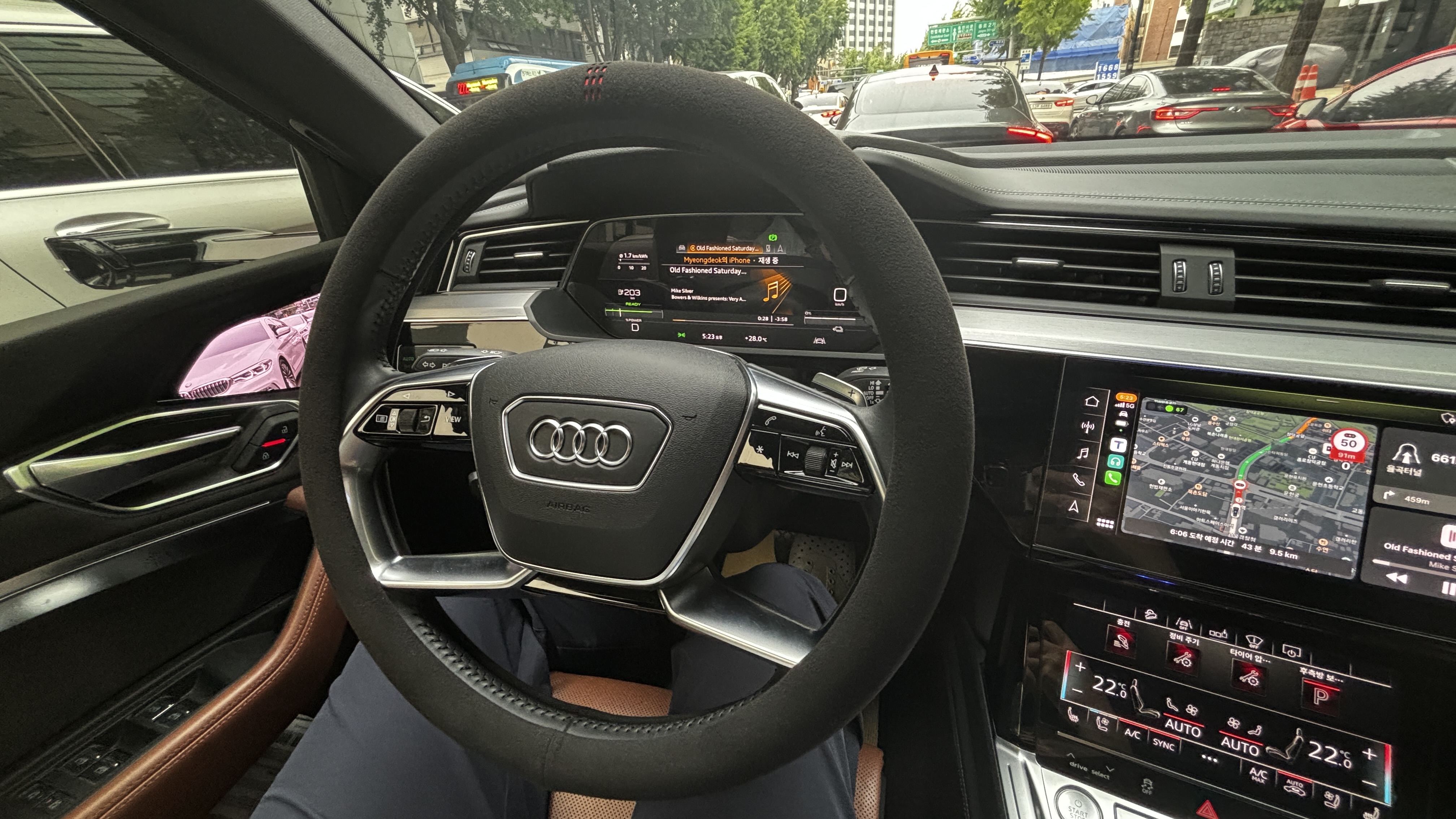 아우디 이트론55가 기본 제공하는 스티어링휠도 상당히 괜찮다. 문제는 기존에 타던 차량의 핸들 림이 두툼한 편이고 개인적으로 손도 많이 큰 편인 데다가, 따뜻하고 푹신한 느낌이 필요해서
