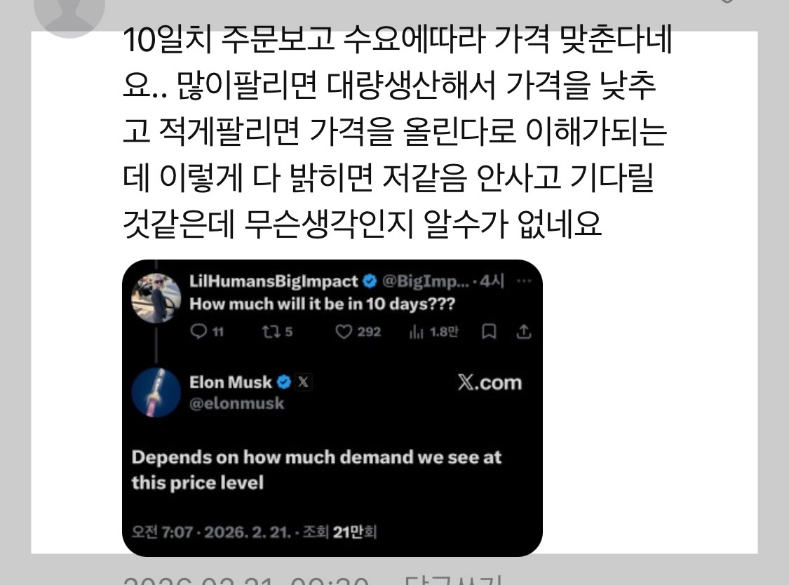 모델s/x 단종 선언처럼,