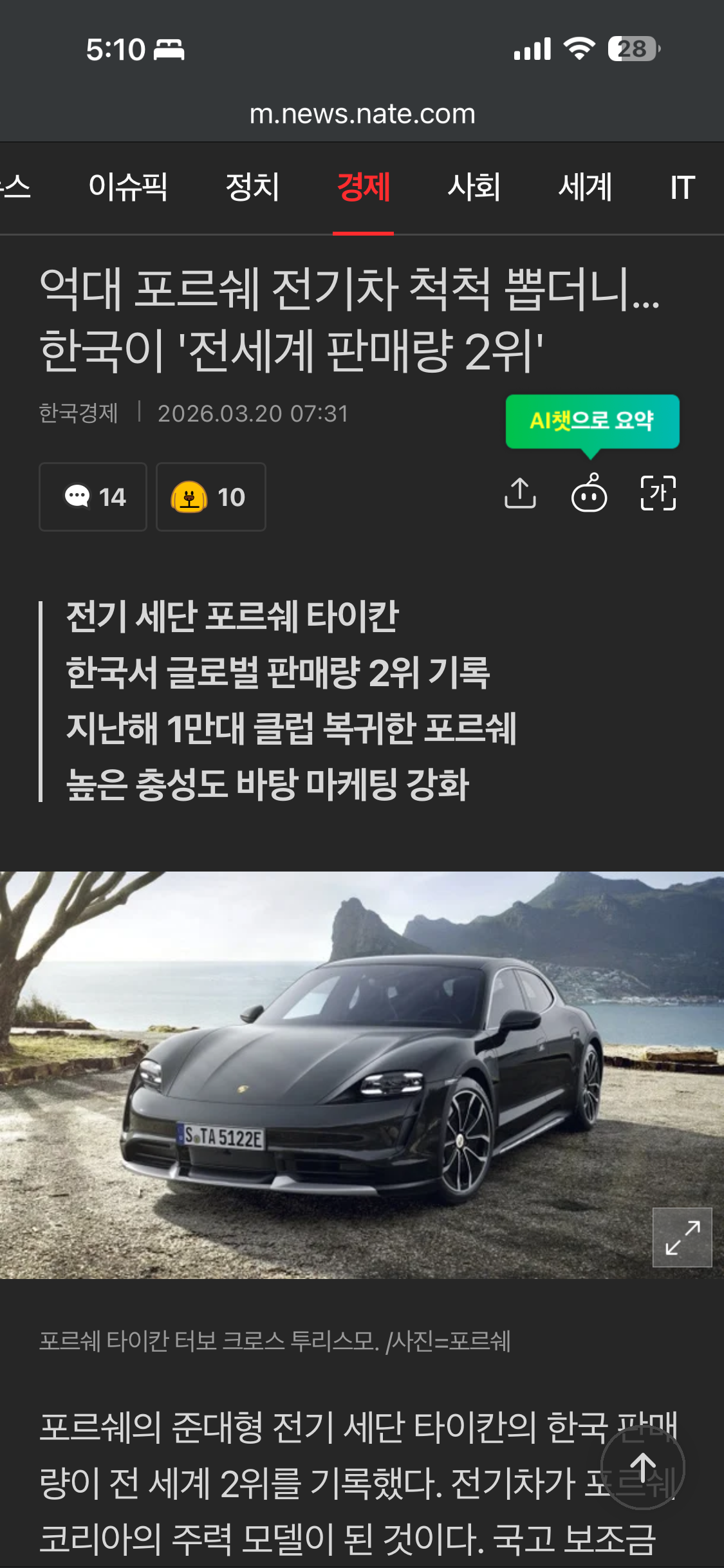 억대 포르쉐 전기차 척척 뽑더니…한국이 '전세계 판매량 2위' : 네이트 뉴스